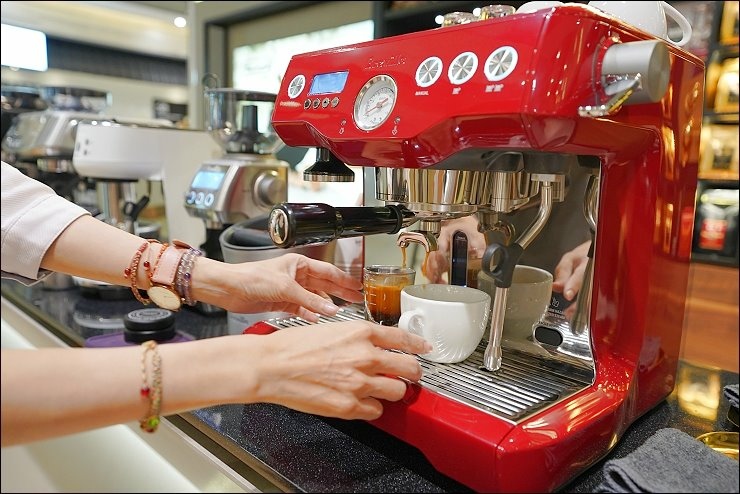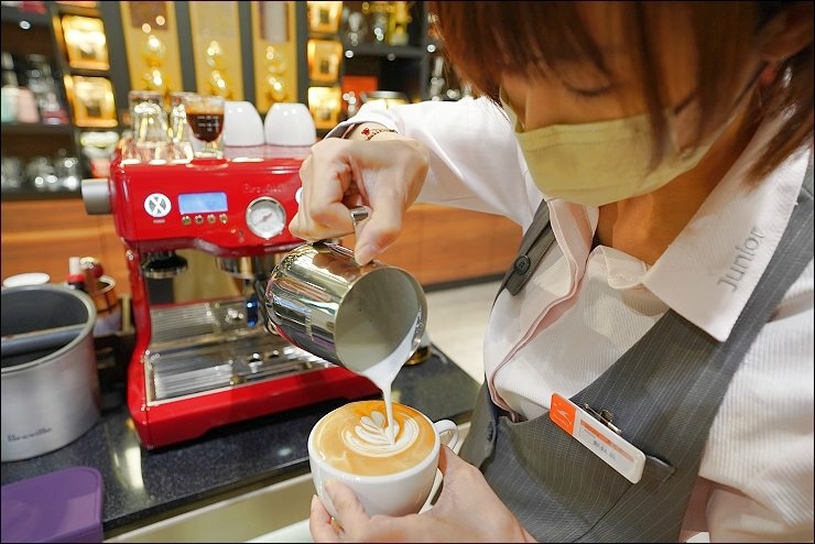Junior 喬尼亞咖啡 Junior coffee 喬尼亞為百貨最專業咖啡機品牌,代理全球頂尖家用咖啡機,首創互動式咖啡機體驗,規劃您的家庭咖啡館!櫃姐現場示範操作給我們看,這麼專業的咖啡機感覺比較算是營業用等級,煮出來的咖啡有著濃濃的cream,它可是義式咖啡最精華!另外也可以用打奶泡,櫃姐輕鬆拉花表演,真是厲害!