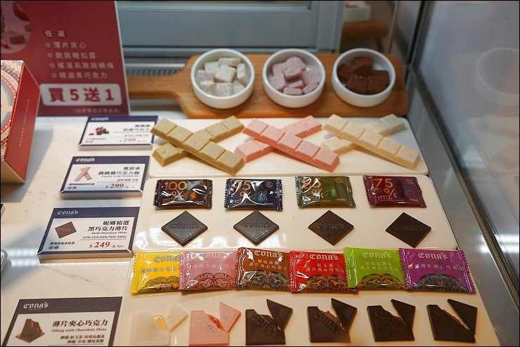 Cona's妮娜巧克力在2019年榮獲ICA世界巧克力大賽的金牌,真是台灣之光!妮娜主廚以活力熱情的態度發揮極具創意的設計,將巧克力與各種食材結合,香甜苦酸各味均衡,濃郁而多層次的口感堅持。 妮娜堅持用美味喚醒心中沈睡的兒時記憶,最初而最真的感動!CONA'S妮娜巧克力五彩繽紛相當吸睛,我們家也很喜歡妮娜的薄片夾心!週年慶單筆消費滿2,000元現折200元。