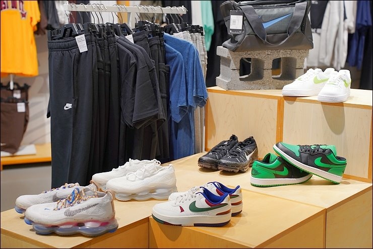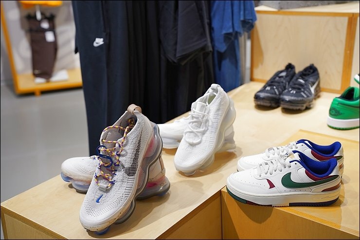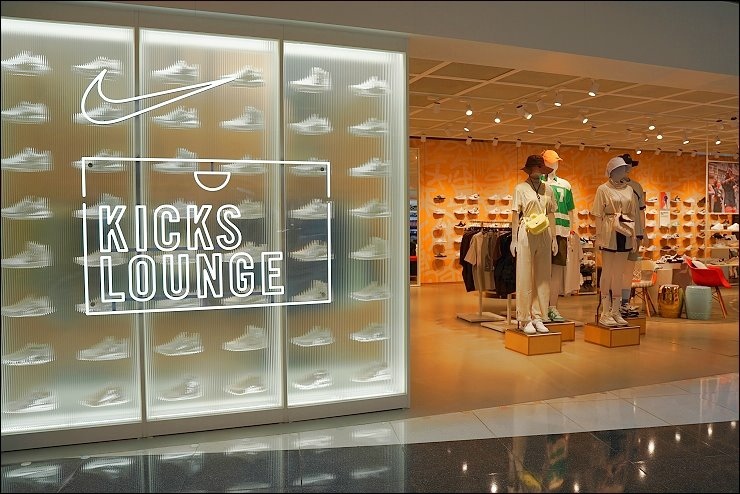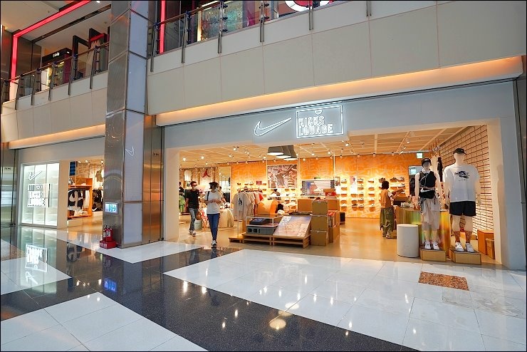Nike Kicks Lounge(1F),寬敞且特別的試衣試鞋空間,獨有的品牌 LOGO 牆後有若隱若現的經典鞋款,打造未來科技感,很多人會在這拍照與打卡。 提供KICKS LOUNGE才有販售的 ACG 系列,是⼾外限定款服飾及鞋款,與一般NIKE店不同。