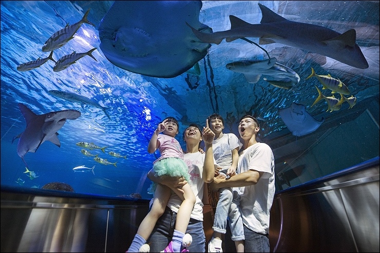 遊樂園新玩法:白天暢玩樂園設施,晚上入住水族館區內與魚群一同入睡,小朋友夢幻體驗第1名。
