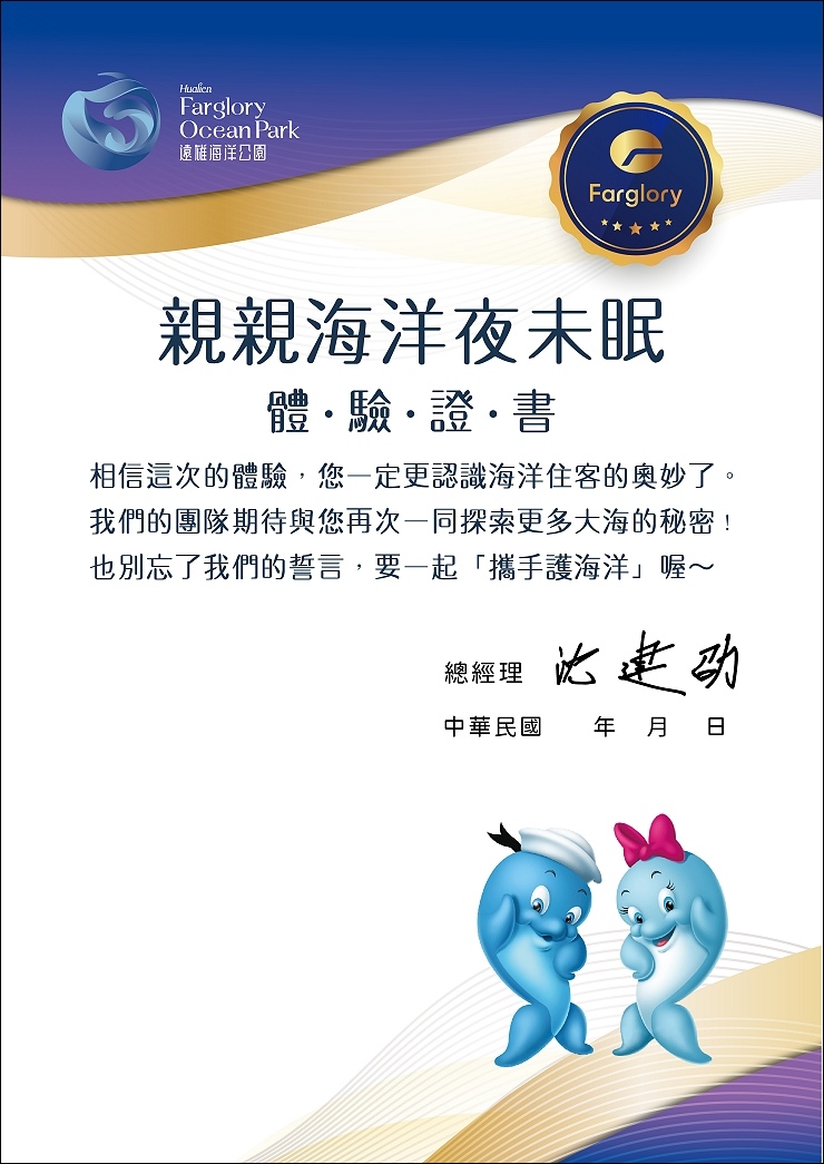 ▲經過兩天一夜探索海洋生物的神秘面紗後,你一定更加了解海洋,也能當個海洋的守護者了!最後還會提供體驗證書哦~