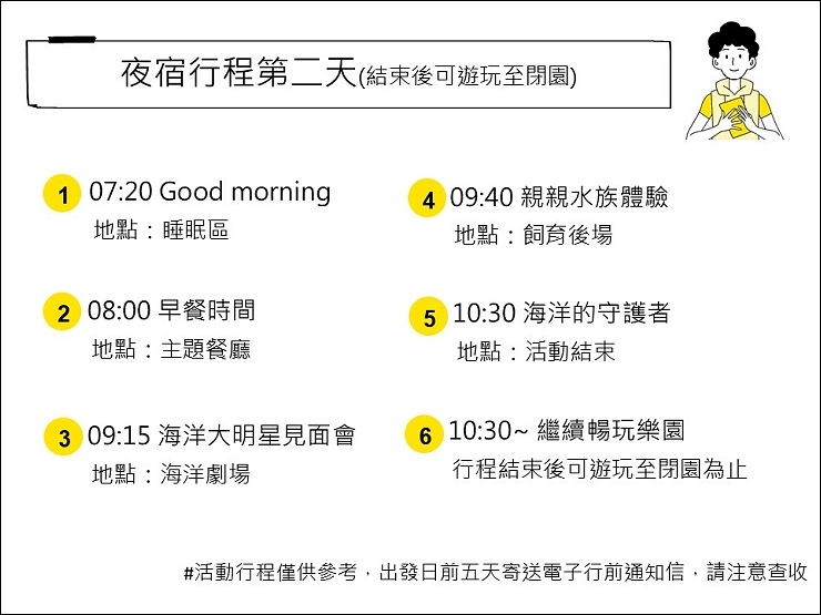 兩天一夜海洋夜未眠專屬導覽海洋解說+和魚兒睡覺覺+遊樂園玩透透。