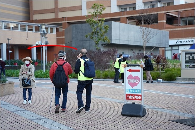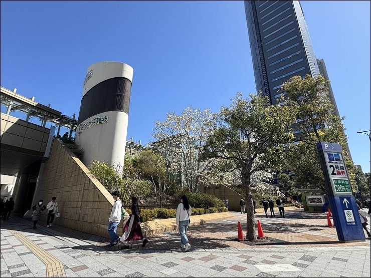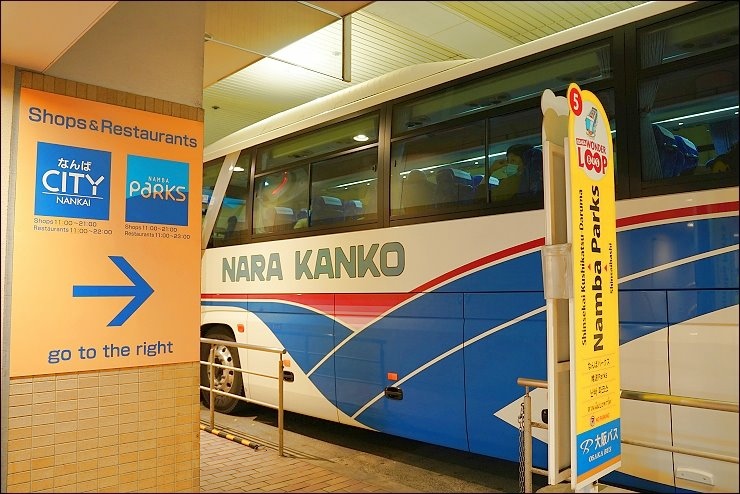 難波集合地點很方便,就在難波PARK步行二分鐘就到!看到阪急交通社集合場所的立牌,穿黃背心的工作人員也會協助指引路線。