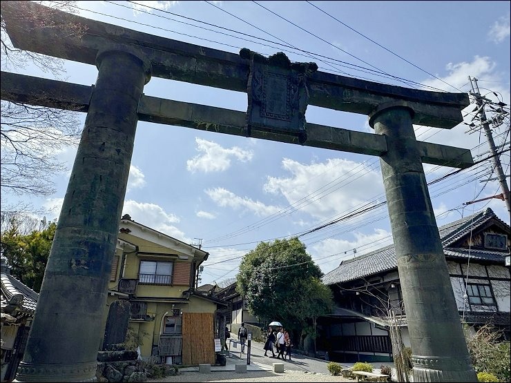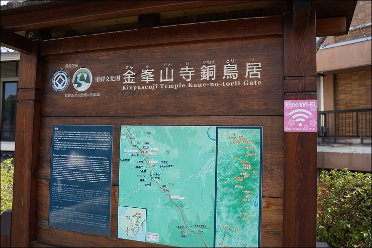 第一站吉野山,這一站有100分鐘的時間讓大家好好散步走走!第一次看到銅的鳥居,高約7.5公尺,柱子約3.3公尺都是銅製的!
