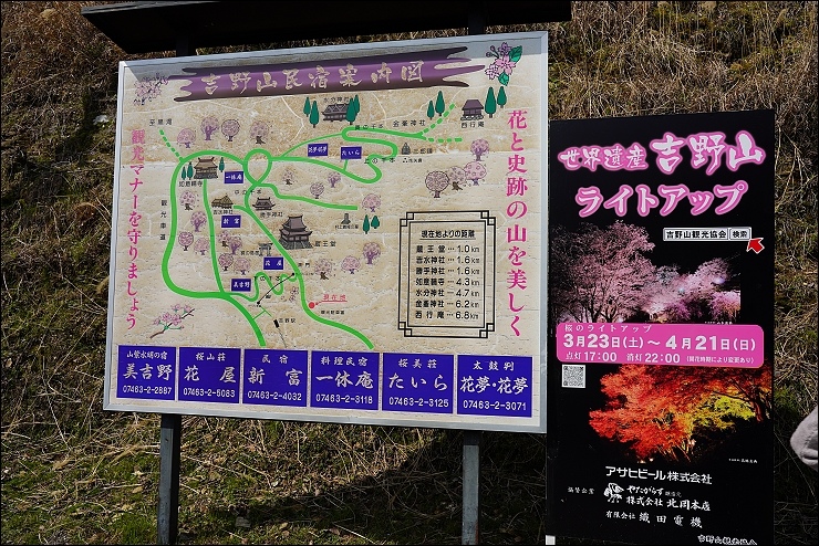 吉野山金峯山寺是奈良的賞櫻景點之一,也是非常具有代表性的寺院。金峯山寺境内的「本堂」及「仁王門」的建築,被登錄為世界遺産,使用自然木造的建物,有68根柱子,很壯觀。