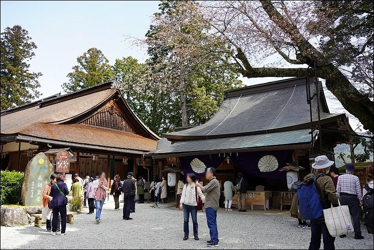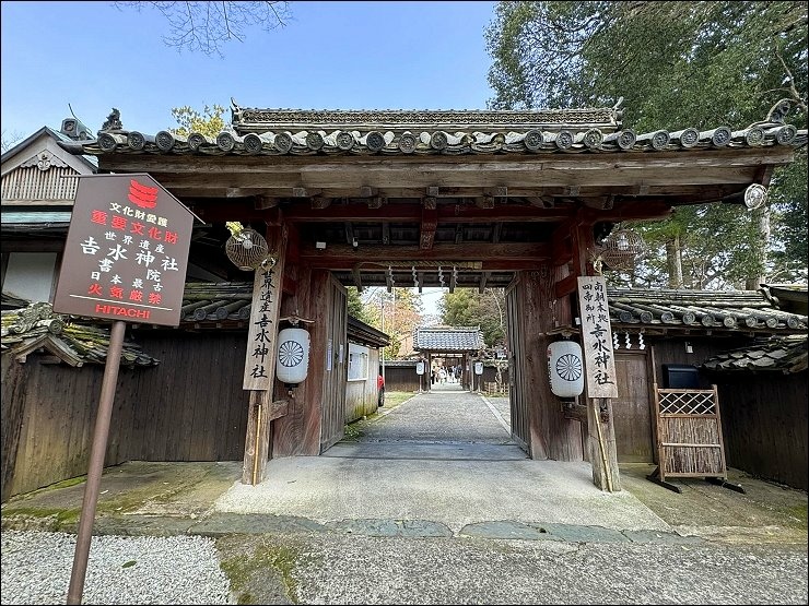 也是世界遺產的吉水神社,這裏古時曾是日本天皇名士的安身之所,以前被稱為被稱為南朝皇居。吉水神社曾是日本最古老的書院,其建築模式成為日後日本書院的典範。另外,【源氏物語】中,吉水神社是日本古代英雄源義經的逃命之地,所以現在這裡可以看到不少日本古代的文物。