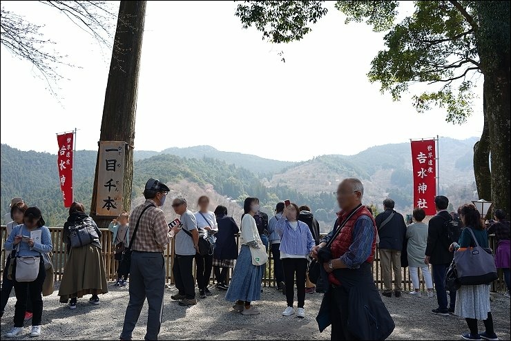 一目千本是指一眼就可以看到上千顆的櫻花樹!!我來的這天日本東京跟大阪才宣布開花!!看到這比較圖,櫻花色染滿整座山,滿開時真是壯觀,可惜我來太早了...櫻花真的很淘氣,今年日本櫻花預測說提前結果又延後,來回就差了好幾天,櫻花花期也很短,連續好天氣出太陽就爆開,來場雨就又打落,真的很是吃運氣呀!!今年沒賞到沒關係,以後還有機會!!
