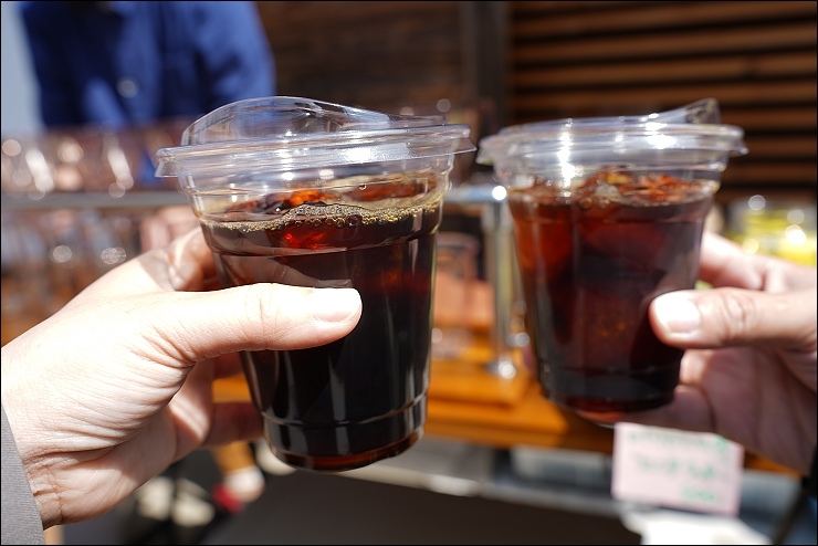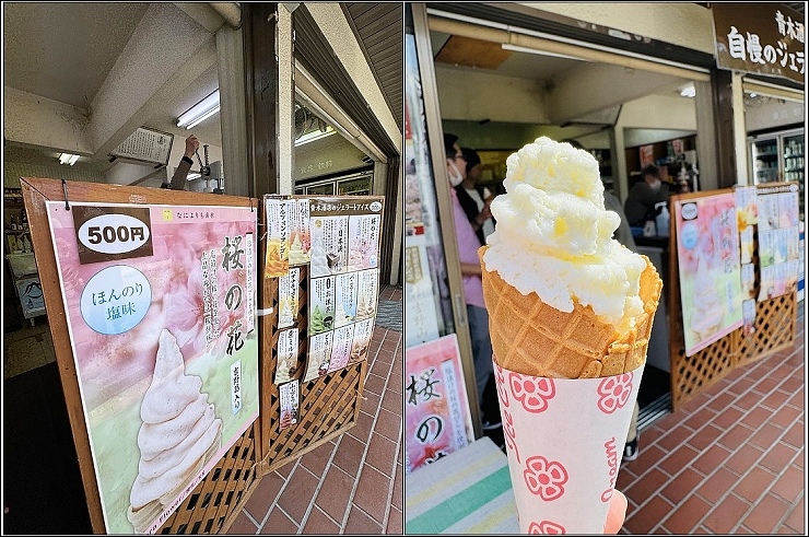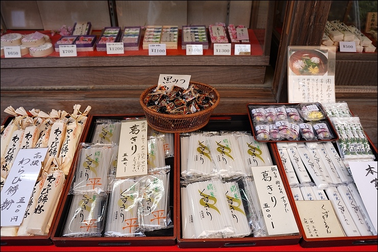 嘿嘿,回程就可以好好在賣店買些伴手禮,像是當地有名的葛粉,它煮起來像粗一點又煮不爛的冬粉,口感QQ的,當然要買呀,而且坐巴士不用一路揹在身上,先放在車上,等最後結束行程再帶走就好了,真方便!葛餅有加黃豆粉,吃起來QQ的也很香!清酒冰淇淋跟現煮黑咖啡清涼解渴!