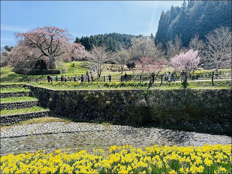 本郷的滝櫻(又兵衛櫻)是日本最美麗的垂枝櫻花之一,據說這裡是活躍於大坂夏之陣,屬於大坂方的武将