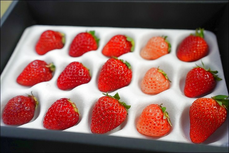 通常是在日本高級百貨公司才賣的草莓,參加這個行程的遊客每人直接領一盒!實在太讚啦!一盒五種草莓約250克。