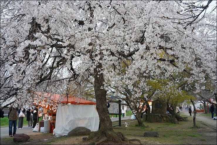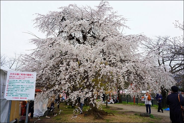 「後藤又兵衛」的居住地遺跡,當地居民親切的稱呼這棵櫻花樹為「又兵衛櫻」,它有三百多年樹齡的枝垂櫻,高達13公尺,樹幹周圍超過3公尺的超大垂櫻!嗯...可惜櫻花沒開多少,但整體還是挺美的,櫻花滿開的美景待我用想像的!