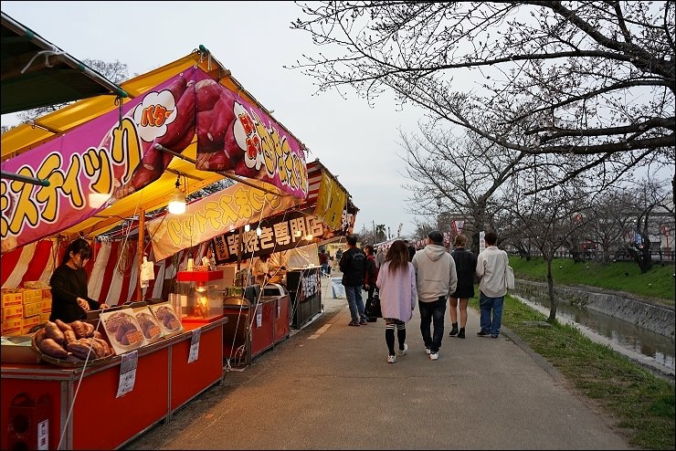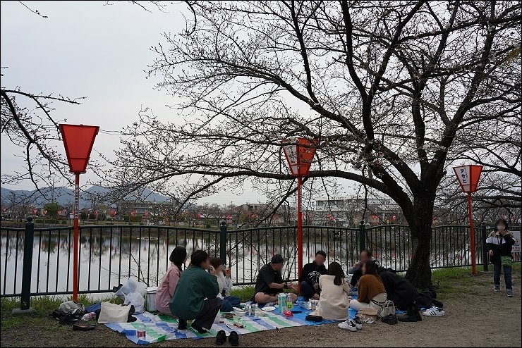 ,是阪急交通社關西巴士之旅最新排進來的秘境,這真的是只有在地日本人才知道的景點耶!!一整排樹齡超過70年的櫻花樹,有公園讓孩子玩溜滑梯盪鞦韆,沿著河岸,也有很多小吃攤可以買,坐在湖邊或是河岸邊野餐、散步,非常悠閒自在!