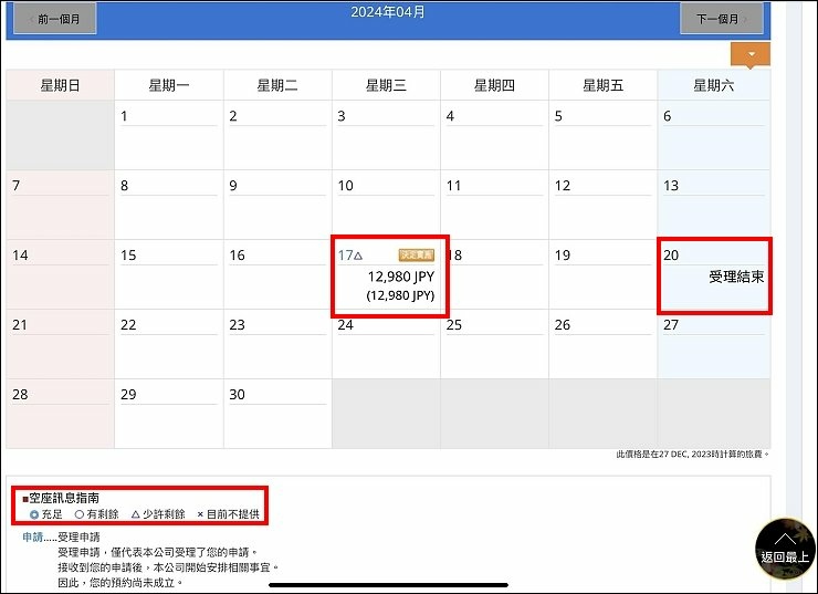 有看到決定實施就是確定成行,點進去可以直接報名!看到三角型就表示座位剩不多,動作要快!!直接線上刷卡付款就可以啦!