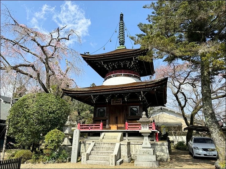在山裡悠閒的走著,呼吸新鮮空氣,看到粉嫩的櫻花,停下腳步欣賞。東南院二重塔。