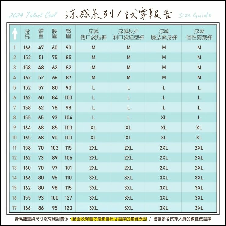 提醒大家儘量以大的那一圍尺寸為準,例如臀大就先考慮臀圍(腰圍應該可以過),如果拿太小號穿久了很容易引起褲子的疲乏斷筋。