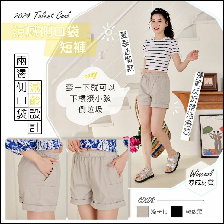 感側口袋短褲:褲管反折帶活潑感,尤其兩邊側口袋設計更是減齡,夏天絕對是短褲出場最頻繁的季節,套一下就可以下樓接小孩倒垃圾。
