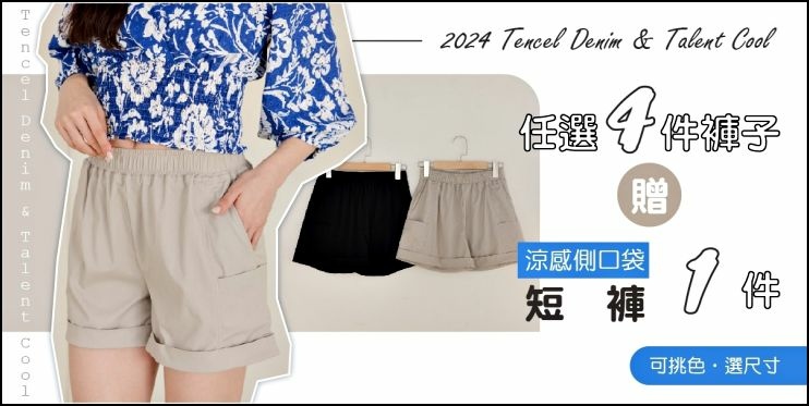 任選四件褲子送一件短褲(涼感短褲團購價:599元,淺卡其/極致黑,可選尺寸可挑色)。
