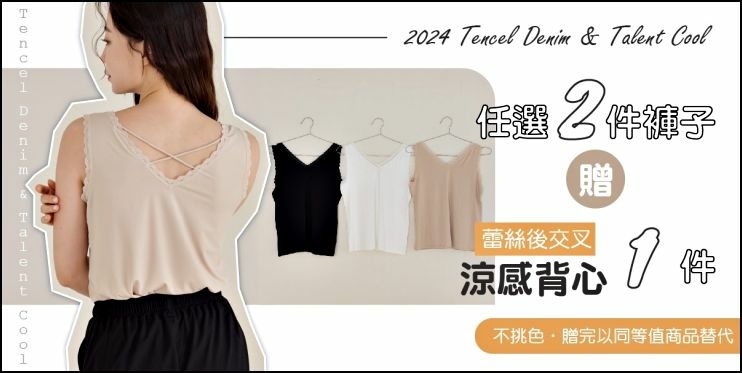 任選兩件褲子送一件背心(清感背心團購價:399元,三色隨機不挑色,贈完改送同等價位);