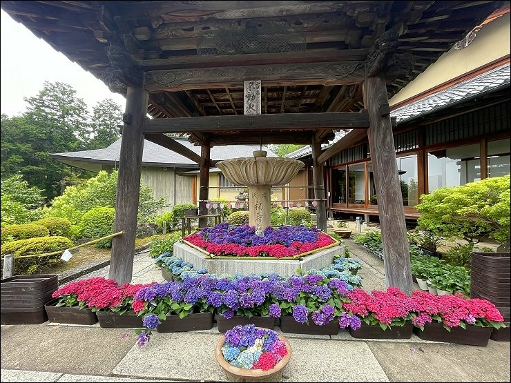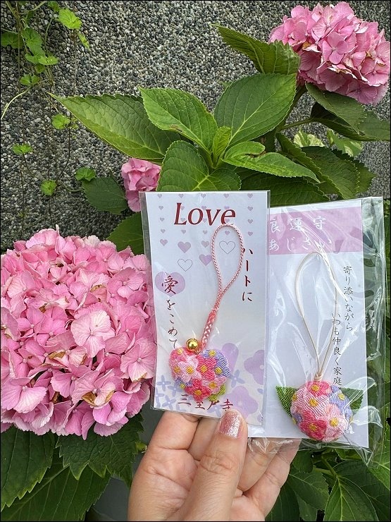 往上走是本堂,還有鐘樓、三重塔,有很美的繡球花手水,夏天還有荷花可賞。