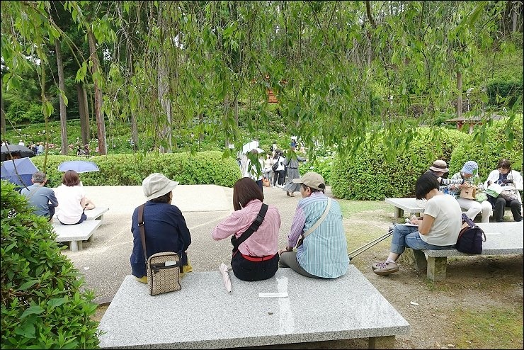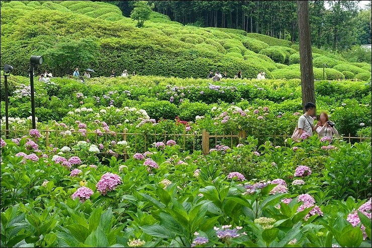 三室戶寺裡的繡球花很大片,大家都淪陷在花海裡。