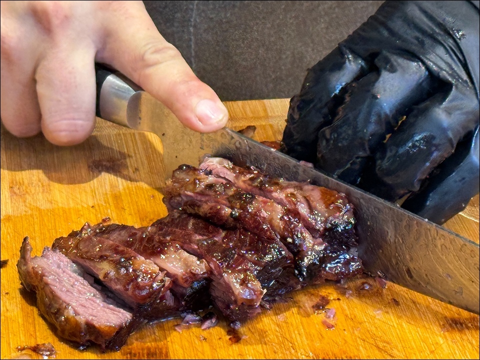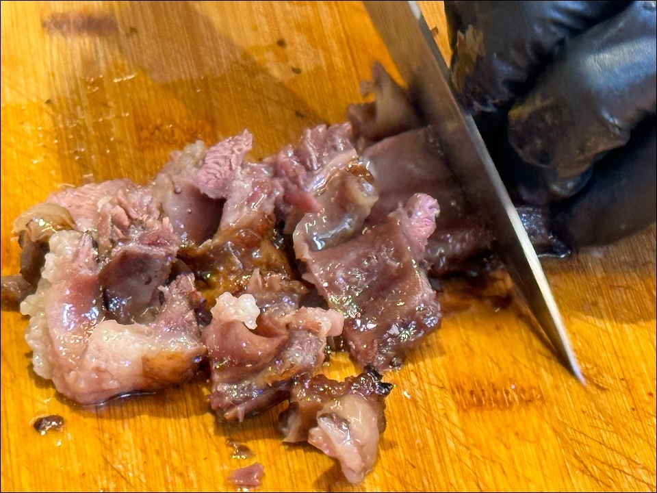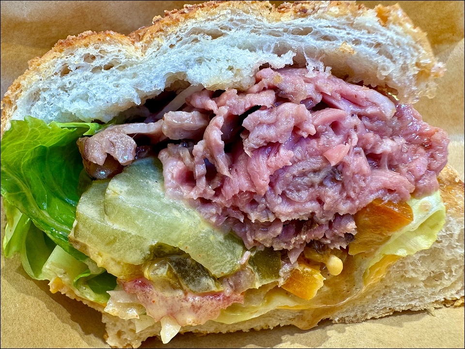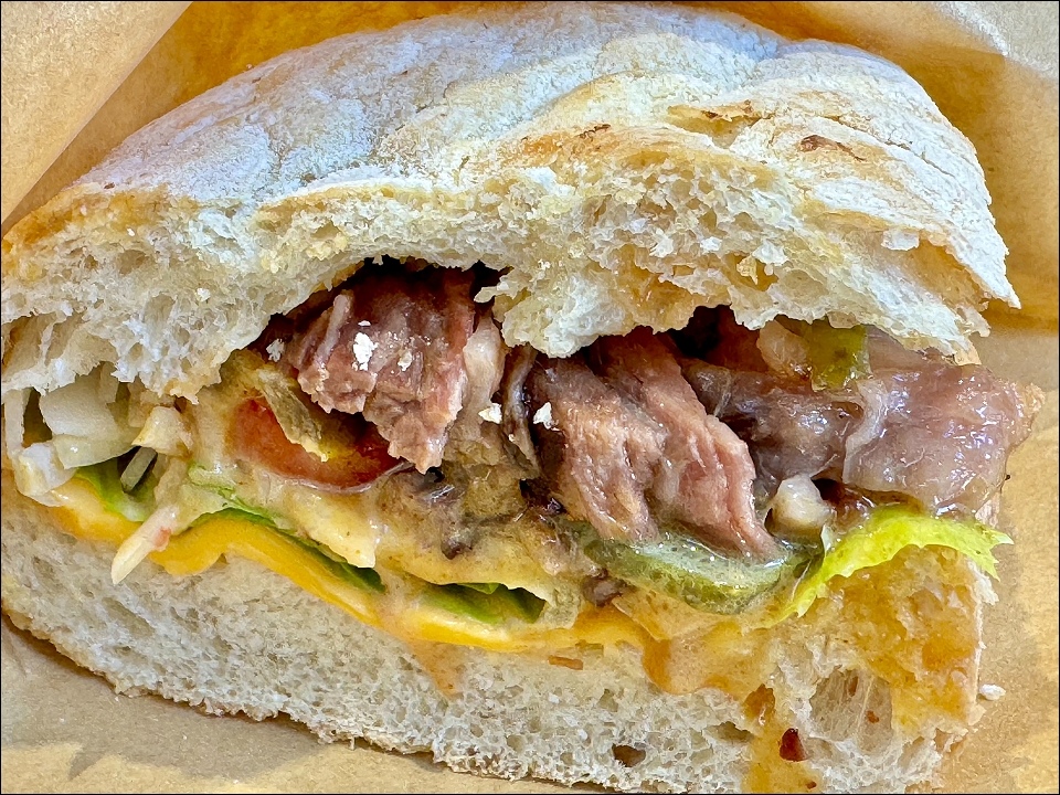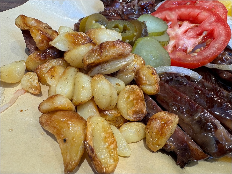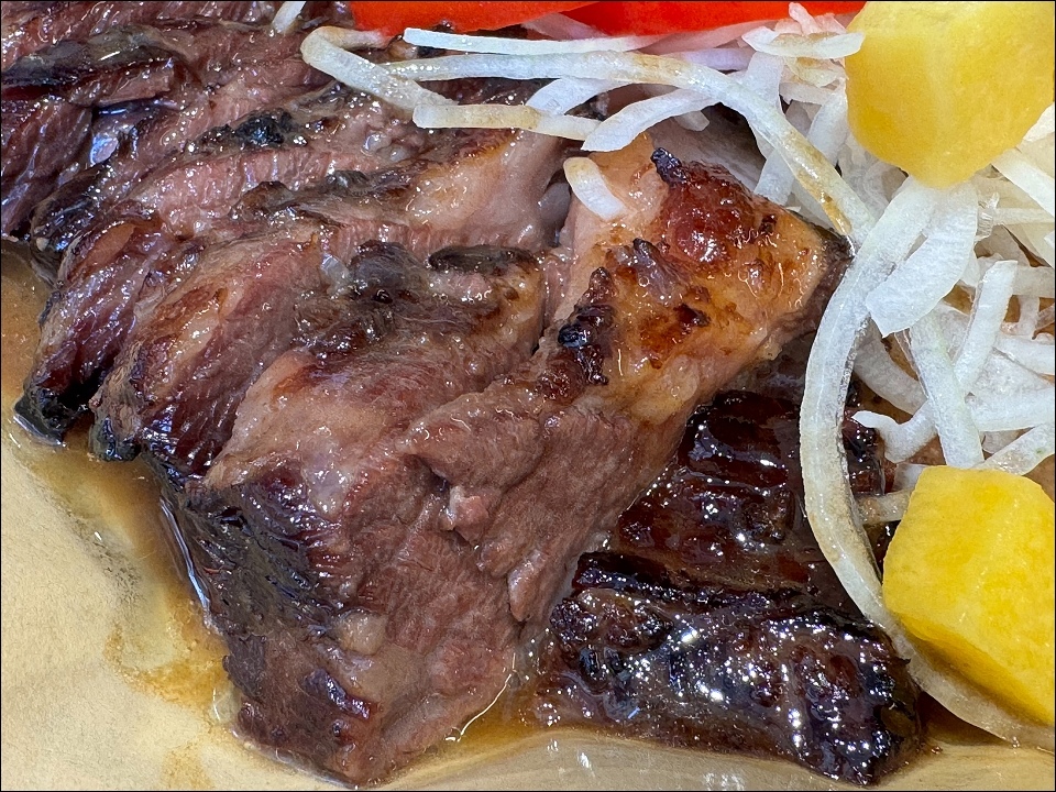 我們各訂一份,其中一份巧巴達換成軟法,店員說粉嫩牛肉如果是單點會變成厚切,炸蒜頭一定要加點,一起吃會有化學作用。