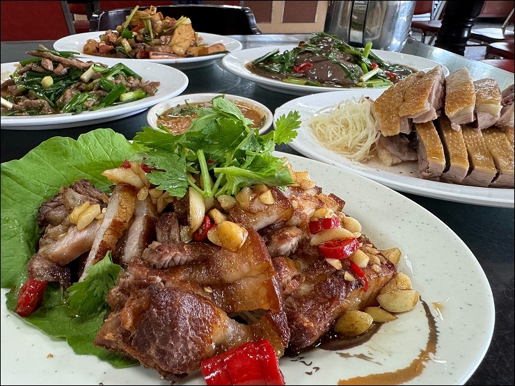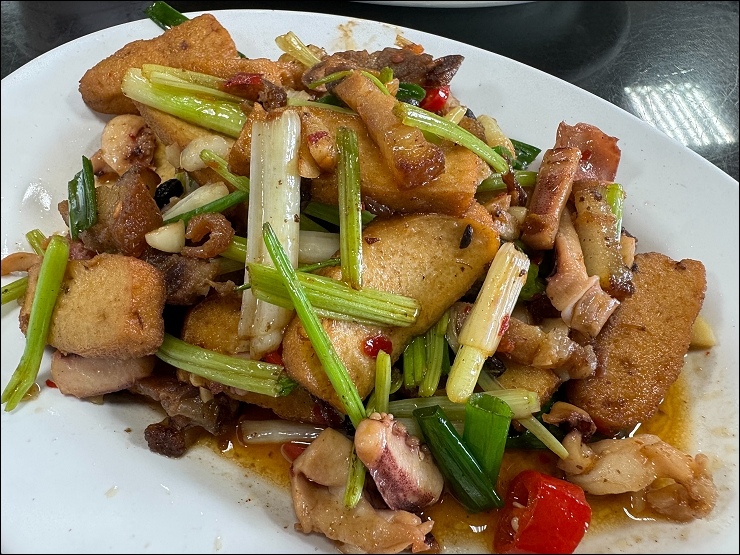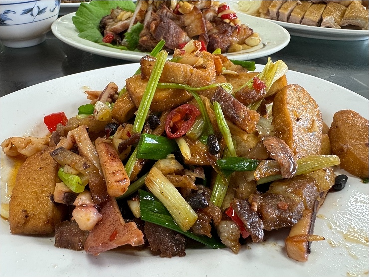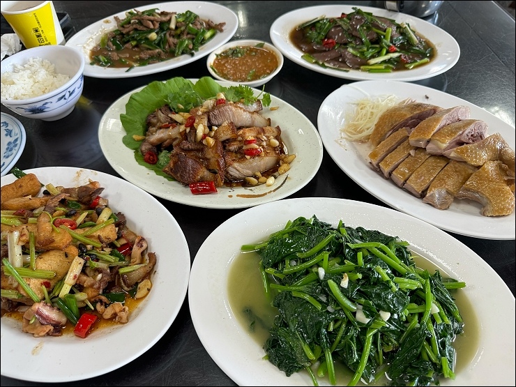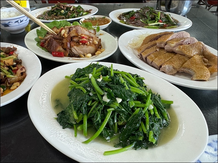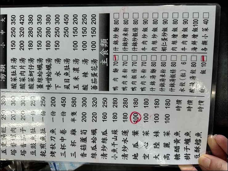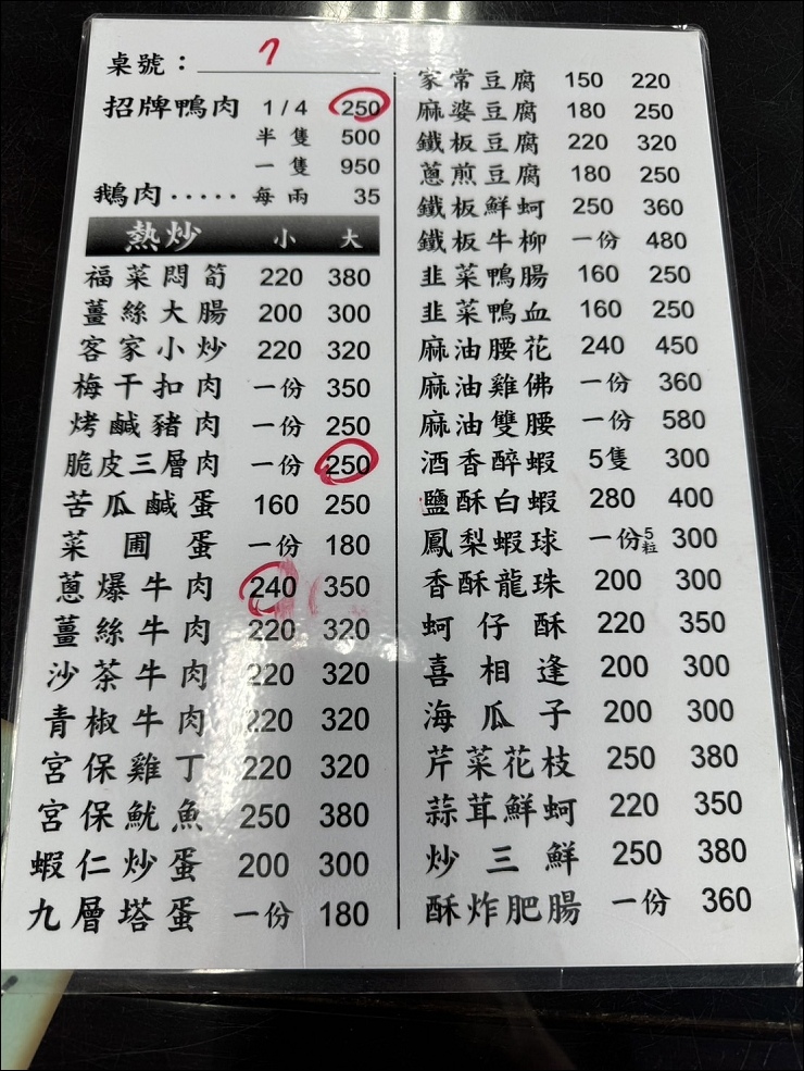 這間菜單有二面選擇蠻多的,估咩推薦的必點菜色還有鴨肉麵(湯沒有許二姐濃但也好喝)、客家小炒(豆干大塊)、宮保雞丁、苦瓜鹹蛋、酸菜肉片湯、炒地瓜葉(今天有點到推!)、蔥爆牛肉、脆皮三層肉(愛吃肥的必點!),我們今天點了四肉五菜一麵一白飯結帳竟然只要1300元,比昨天的美樂地我家小館還便宜一張小朋友,難怪估咩網友會說這間CP值很高。