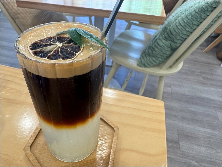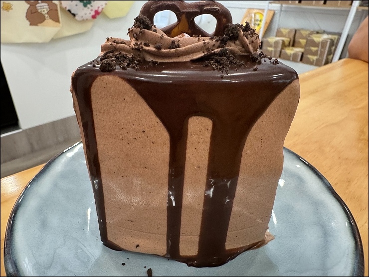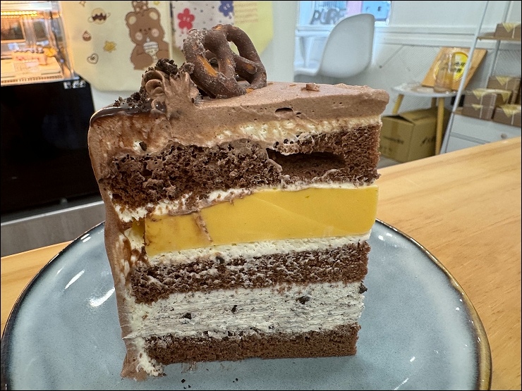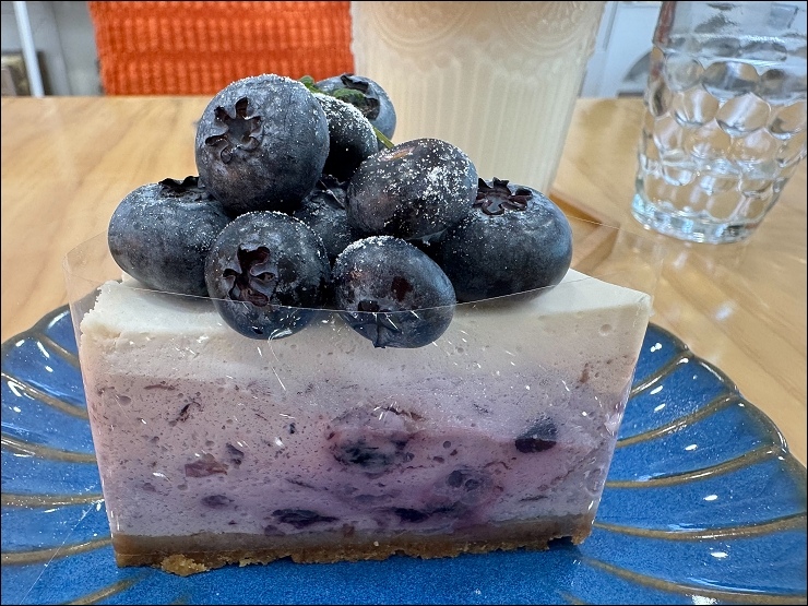 估咩說這家有龍潭必吃的戚風蛋糕,然後鹹食也好吃,站在甜點櫃前會有選擇障礙,每顆蛋糕都想吃這樣。我們這天點了OREO布丁可可戚風和藍莓生乳酪,配西西里咖啡和鮮奶茶,要不是剛才鴨肉麵吃太飽,還會想加碼芋泥焦糖餅乾芝麻戚風和酒鬼提拉米蘇,下次有機會再來補吃鹹食。