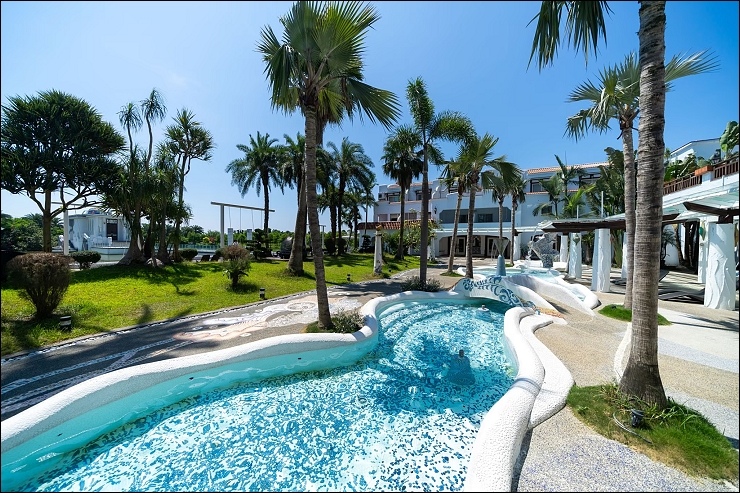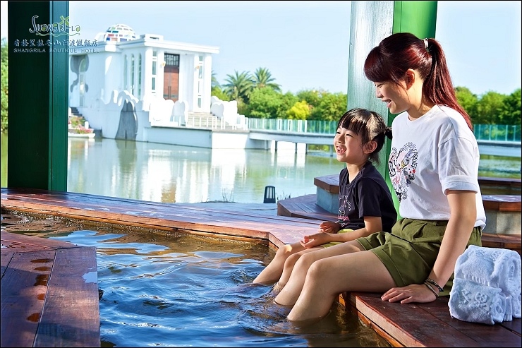 ▶ 免費使用溫泉SPA館、溫泉足療池、生態釣魚池、中庭戲水池、家庭電影院、傳統童玩體驗、宮廷服體驗。