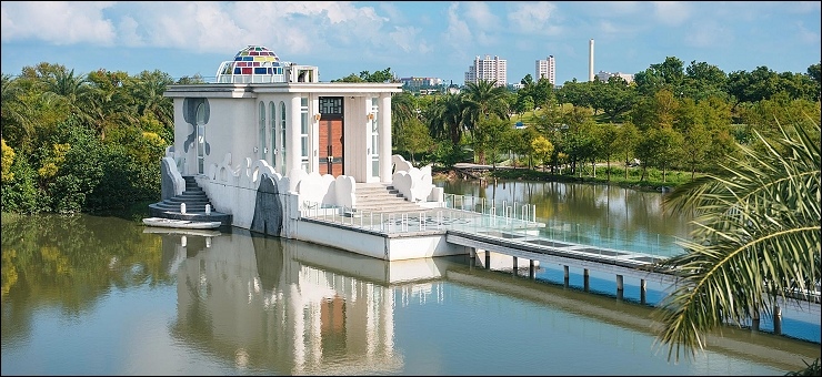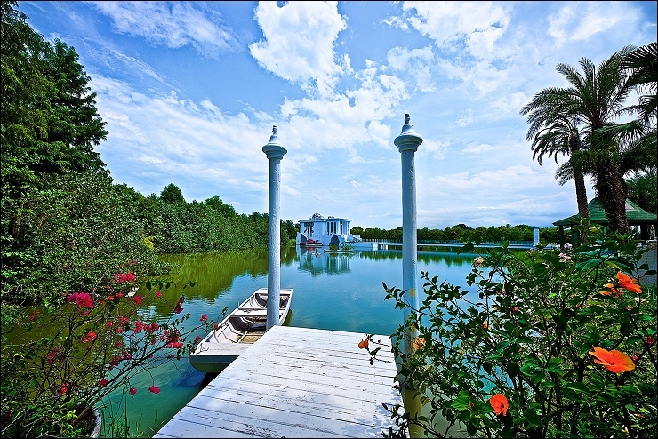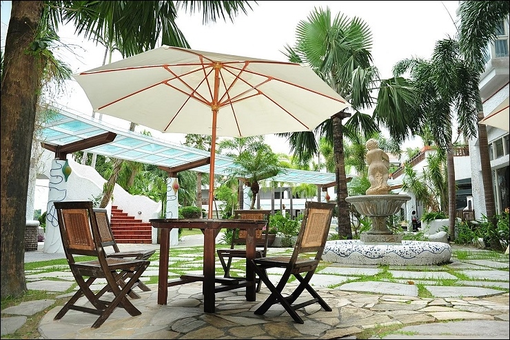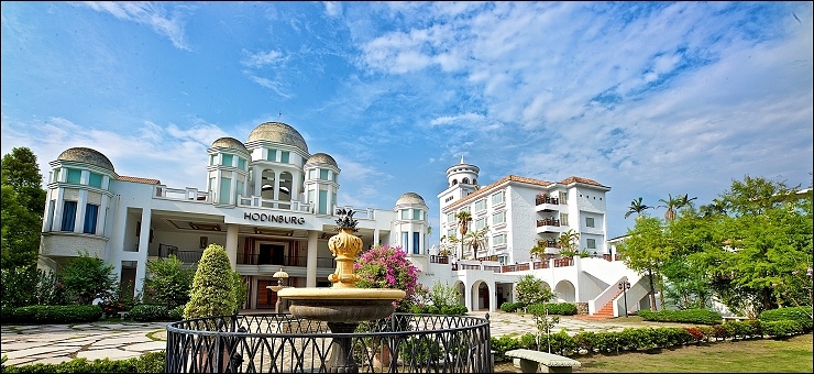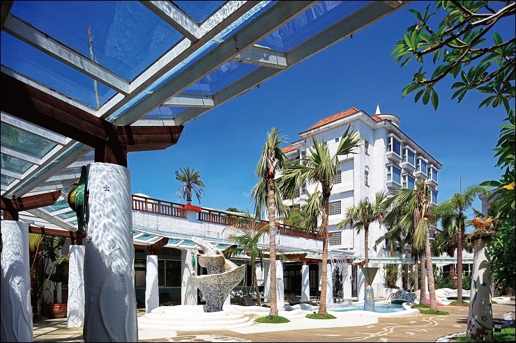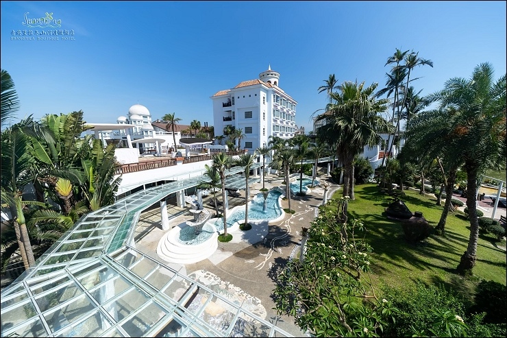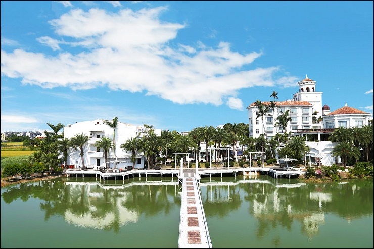 飯店為西班牙風格的異國建築,有座落湖中的永恆水教堂,是這幾年宜蘭最夯的拍照秘境。