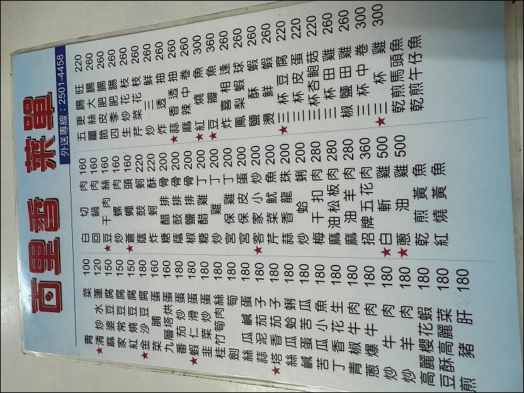 平日中午11點10分來百里香熱炒,店家還沒開燈桌上就擺了好幾袋雞腿便當(應該都是附近上班族訂的)。以前來這家唯一必點香煎豬肝(這次來吃少了香菜提香,差了那麼一點味!),估咩推薦的必點菜色還有排骨飯(炸排骨好吃)、雞腿飯(先滷後炸的雞腿更好吃)、蒼蠅頭、滑蛋蝦仁、金沙豆腐、炒水蓮、紅燒魚、豆瓣魚、蒜香蝦仁。