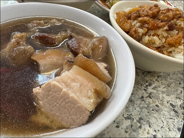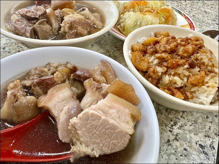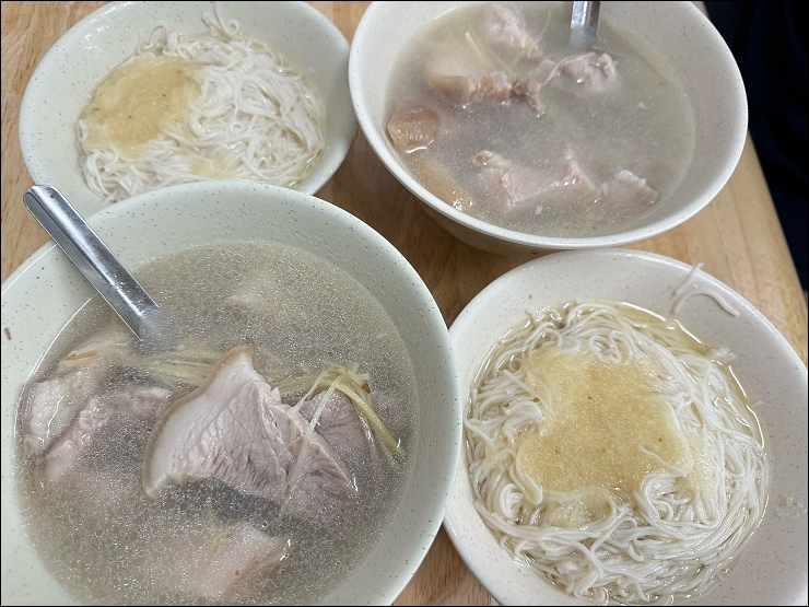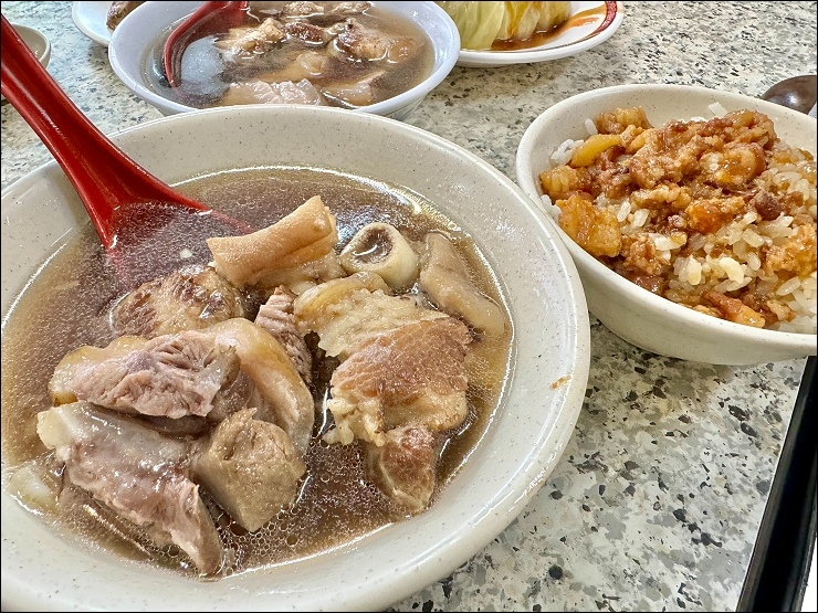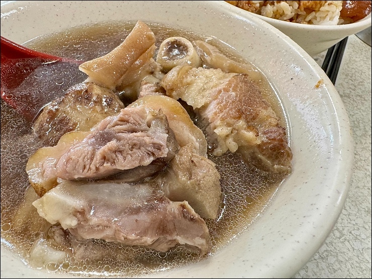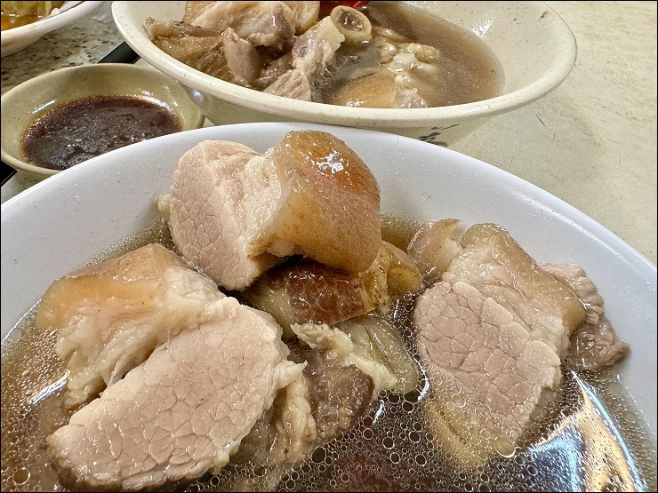 附近大稻埕美食街慈聖宮的許仔豬腳麵線,賣的也是清燉(白滷)豬腳,許仔還有Netflix最新上架的黑白大廚評審白種元推薦,路過時真的有看到韓國觀光客自己端著湯去找位子,大胃王的團員也可以安排同一天一起解決掉。