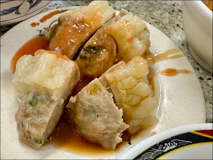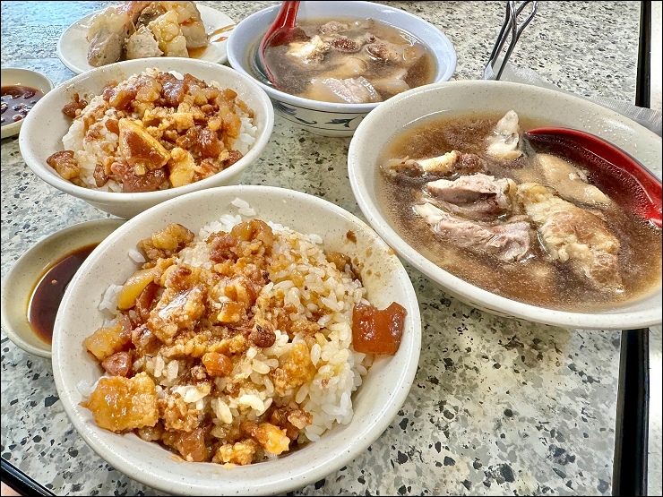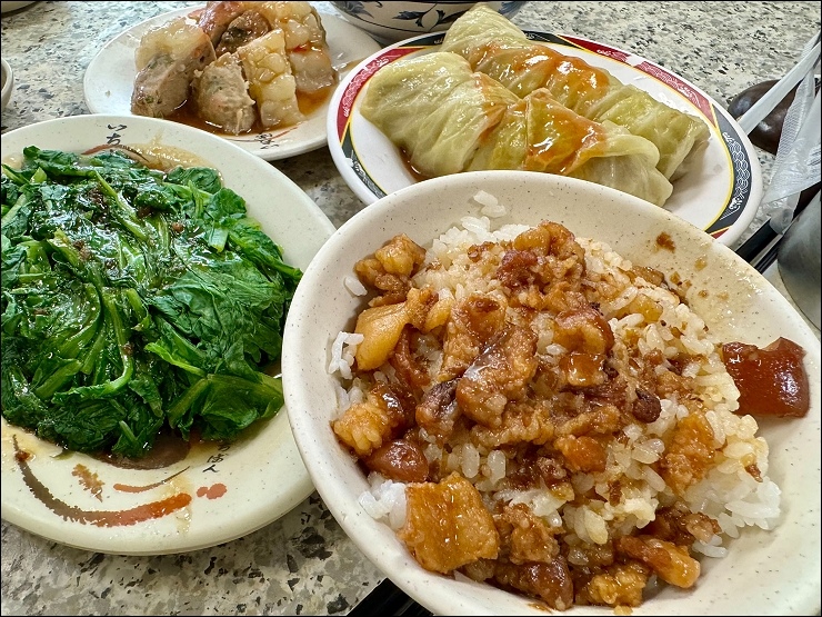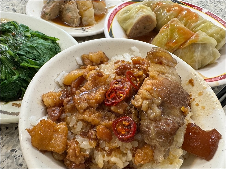 這家的滷肉飯(鳥大叔會加辣椒)和當歸豬腳湯(可以續湯)的口味都偏淡,關東煮高麗菜捲和苦瓜口味較為一般。
