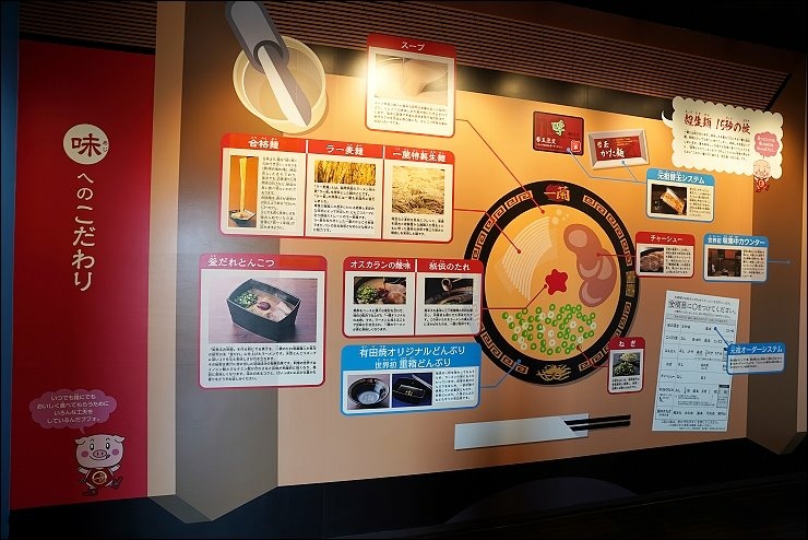 一蘭拉麵博物館,從日本三大拉麵歷史及各種拉麵的差異與特色,也展示了煮出一晚道地一蘭拉麵會需要用到的用具,從這些小地方就能感受到拉麵在日本文化中的重要性。