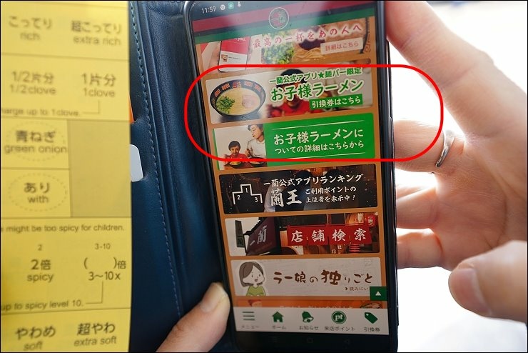 點餐時,因為導遊Q醬是日本電話,下載一蘭APP,同行若有小朋友,小朋友的拉麵一蘭招待的唷!!