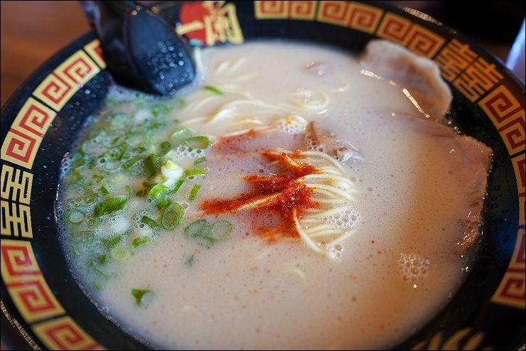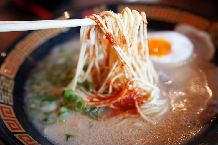 麵條我通常會點偏硬,因為上桌後還會花一點時間拍照,所以等到吃的時候麵條才不會太軟!一蘭之森可是麵作好送到隔壁的屋台街,在這裡可以吃到最新鮮的超生麵,含水量更多,麵條軟Q吸附湯汁好美味!!一蘭的特製辣粉一定要加,非常香!