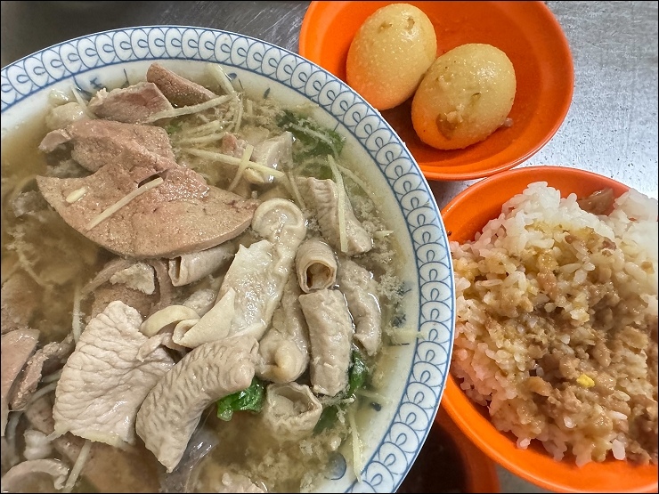 從板橋直衝基隆喝熱湯,基隆在地團員留言推薦孝三路必吃的無名綜合什錦湯!是說基隆孝三路美食小吃實在太多,來過幾十次竟然現在才發現這間,查估咩地圖網友說這間也叫東海綜合什錦湯,是孝三路平假日都要排隊的寶藏店,店家離基隆車站不會很遠,開車可以直接導航南站停車場,走過來不用五分鐘,交通很方便。我們今天大約12點到,意外只排了十分鐘就入座,排隊時板娘就會出來點餐,內用外帶都要排排隊。