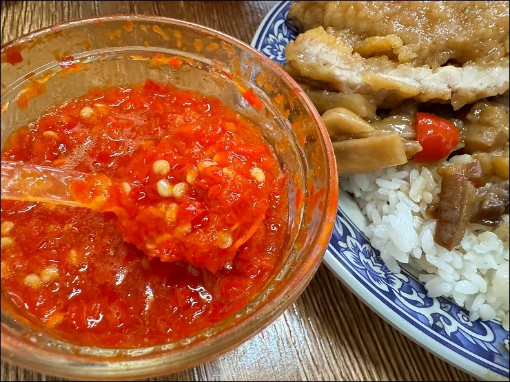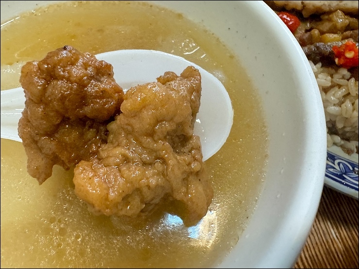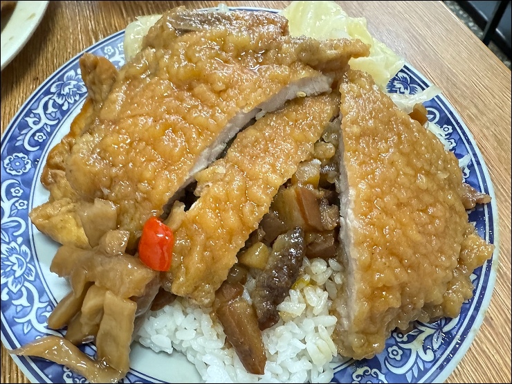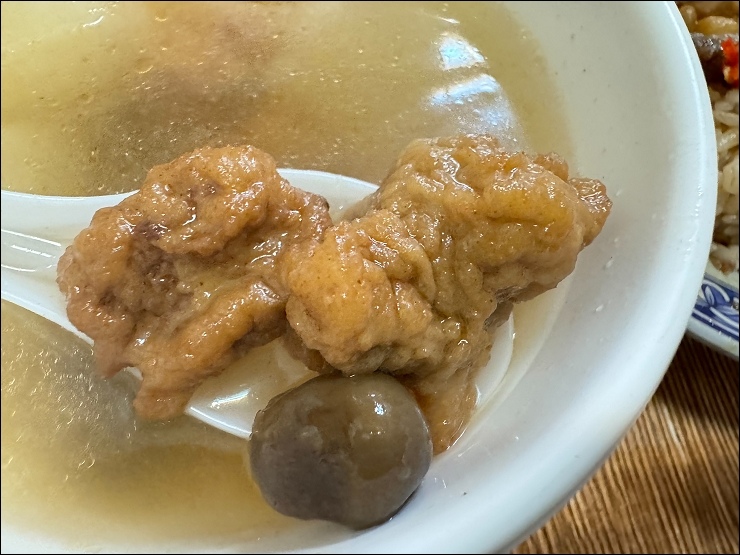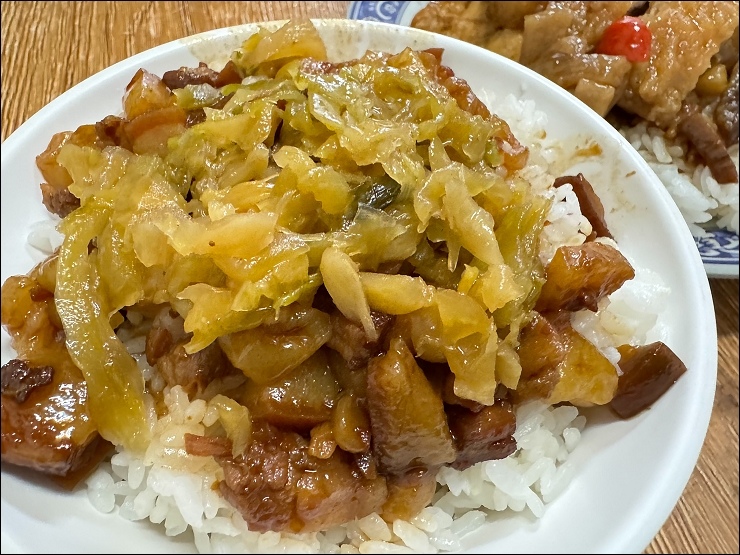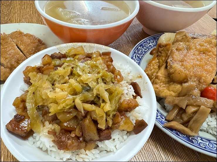 滷肉飯還真的不錯吃,滷汁感覺蠻古早味,不是五燈獎那種偏甜口味,上面還給了一大堆酸菜。