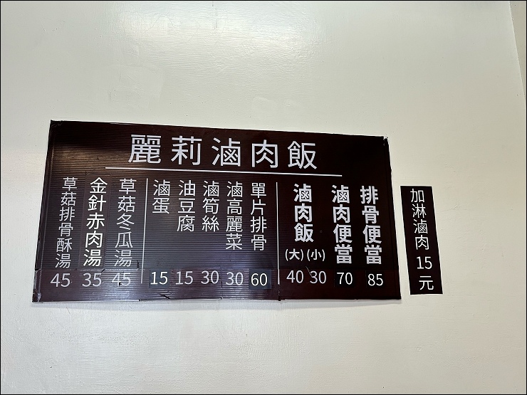 三重在地團員留言推薦的三重必吃滷肉飯,這間之前就三不五時都看到住三重的好友騎車過來吃飯打卡,感覺比較像是在地人低調吃的愛店,不在觀光客最愛的今大、店小二、唯豐、蓮霧和五燈獎這五大三重滷肉飯之列。店家在靠近三和夜市自強路端出入口,營業時間很長從中午一直到宵夜場都有,以前還會來吃這裡的明仁蚵仁湯和萬粒肉圓,看估咩地圖說麗莉滷肉飯搬過店面換過老闆,用餐環境變好但口味沒有太大變化,今天去吃的時候是二位新住民店員,服務還蠻親切的,大部分客人都是外帶,內用位子不多環境算OK也有冷氣。