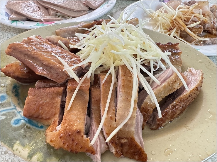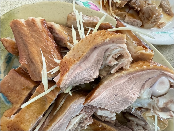 今天周六早上10點50分來,剛好搶到最後一盤鵝肉,部位是要啃骨的鵝翅,下一組客人就只剩鵝頭可以點了,老板娘說今天的鵝肉是非洲來的,皮比較黑XD