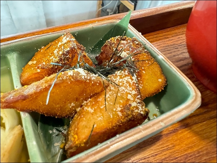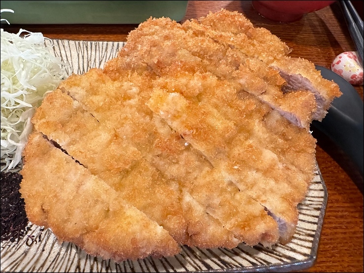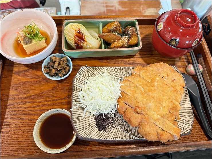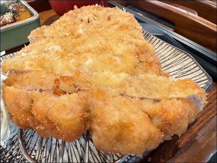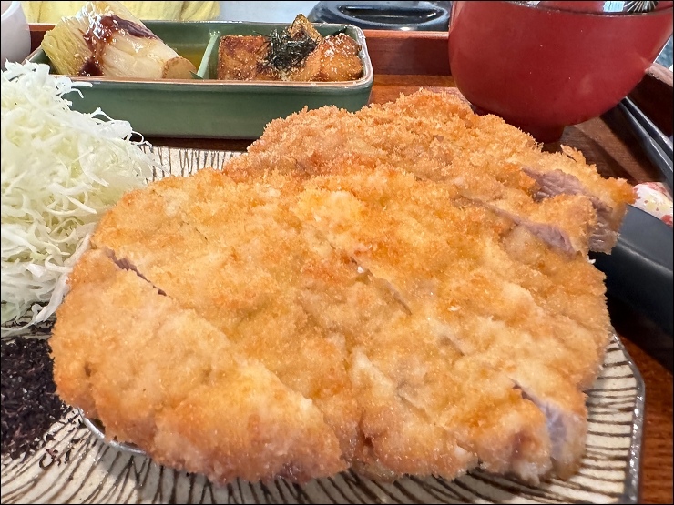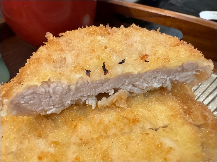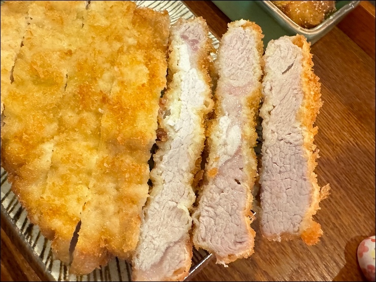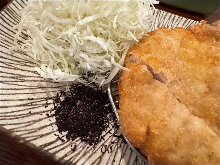 團員留言推薦的厚切炸豬排定食,沾紫蘇鹽有加分,豬排軟嫩,但外皮有點濕軟,不是想像中咔嗞咔嗞的口感。