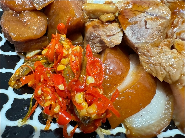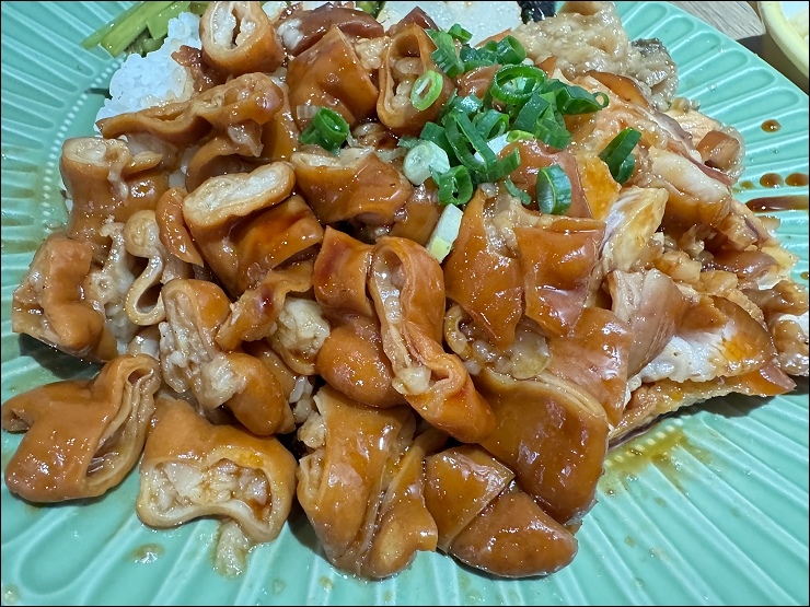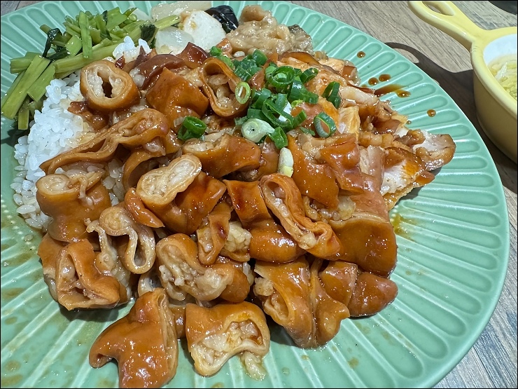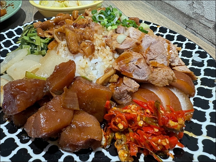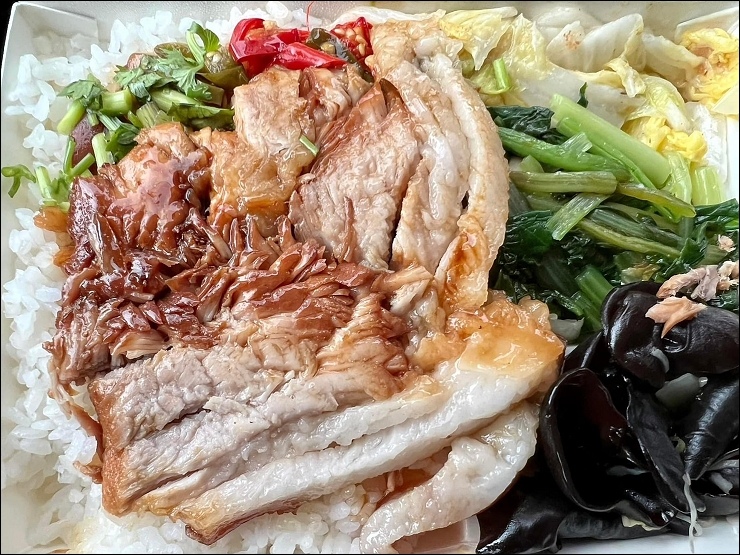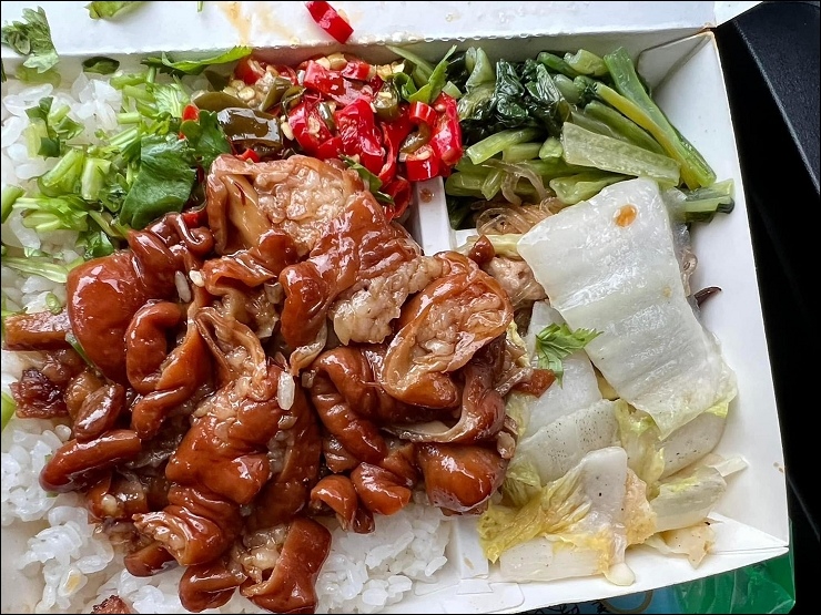 便當以前好像還可以選菜,這次來好像就沒得選菜了,這家的配菜算一般,但主食腿庫和魯大腸真的太強大,敢吃辣的話記得加辣,這家的辣是大辣等級的!