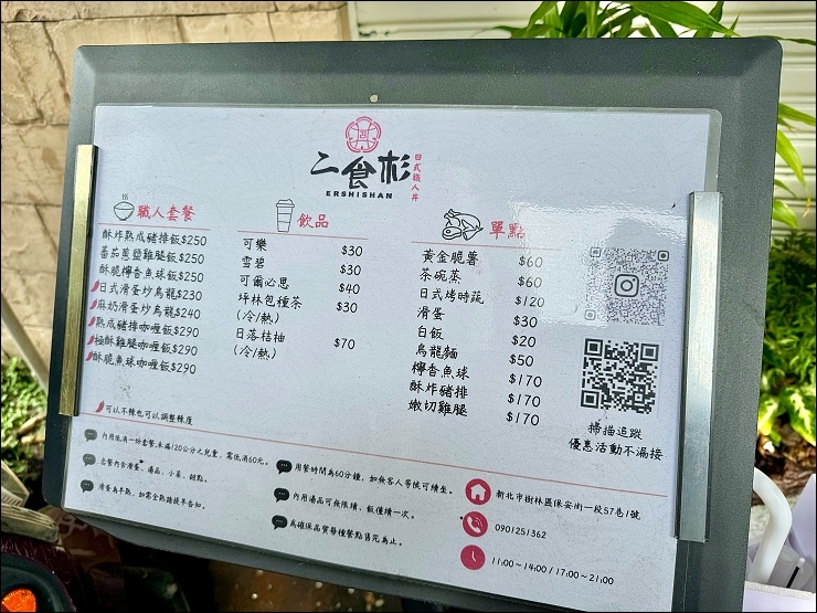 團員留言推薦的平價豬排王者! 上次打卡桃園車站拾位製飯所時,團員來留言推薦樹林後車站附近這間二食杉是平價豬排王者,看估咩地圖店址在樹林保安街一段(近樹林火車站),從板橋家裡騎機車過來只要19分鐘,開車會比較不好停車,假日建議先訂位,我們平日中午一開門立馬衝,內用位子還不少。
