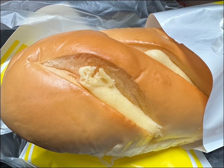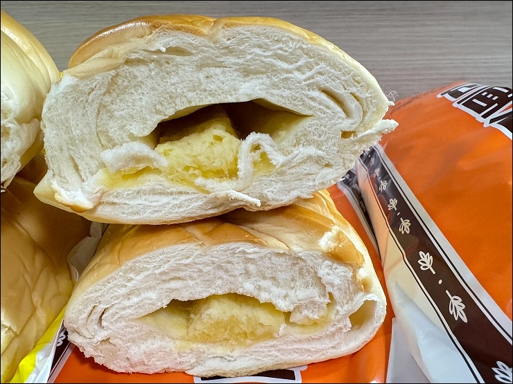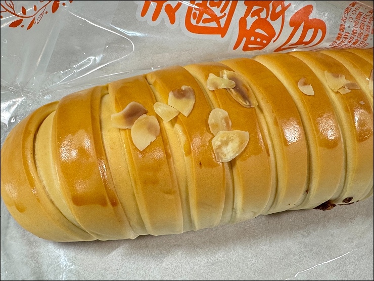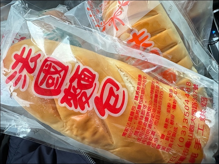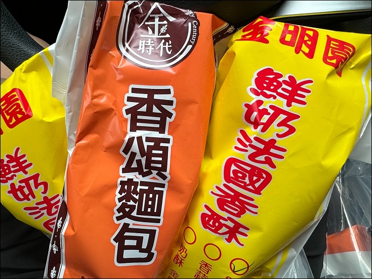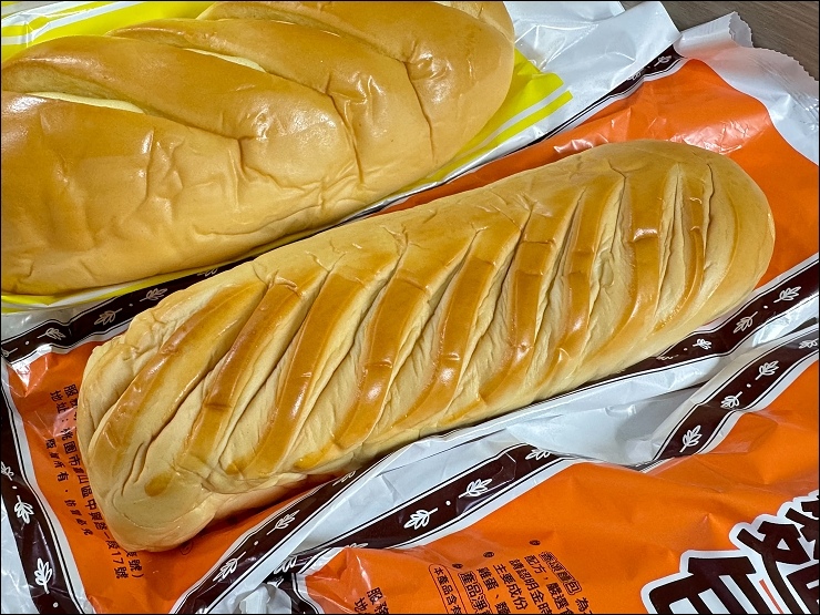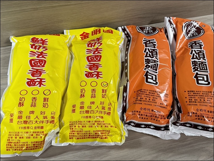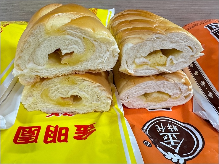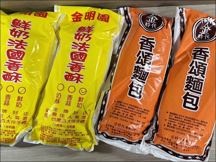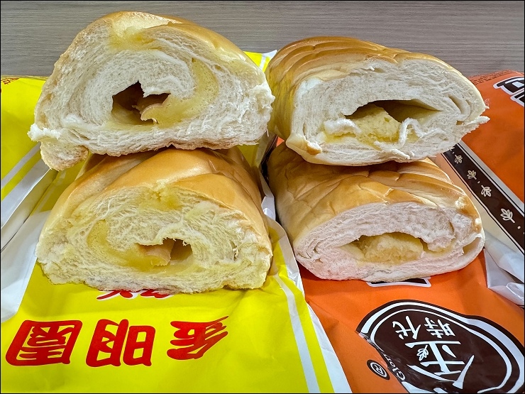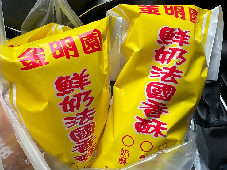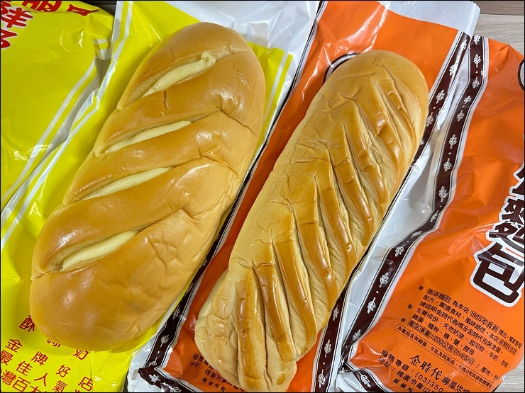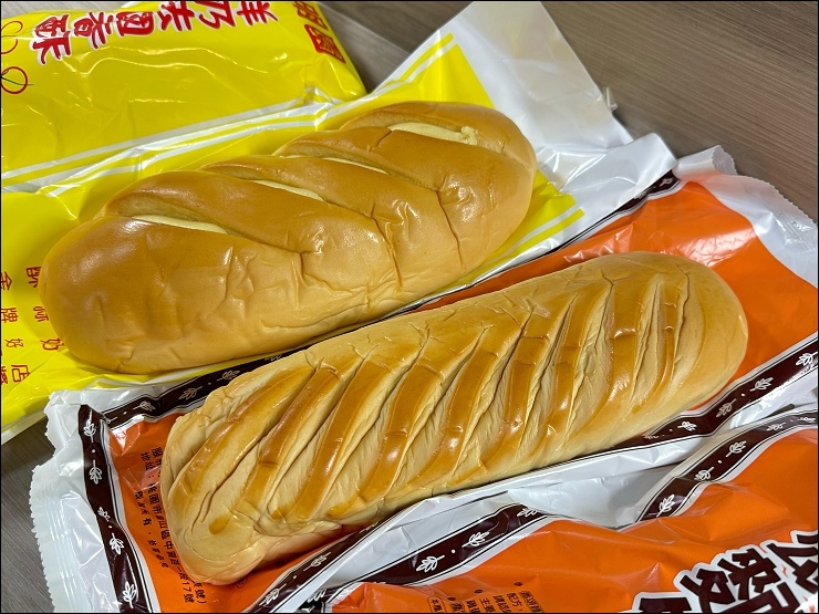 跟金時代法國麵包放在一起吃,金明園的麵包較軟內餡較香甜,金時代的麵包較硬內餡偏鹹香,兩家各有特色,照片拍完這二條都直接嗑光光!