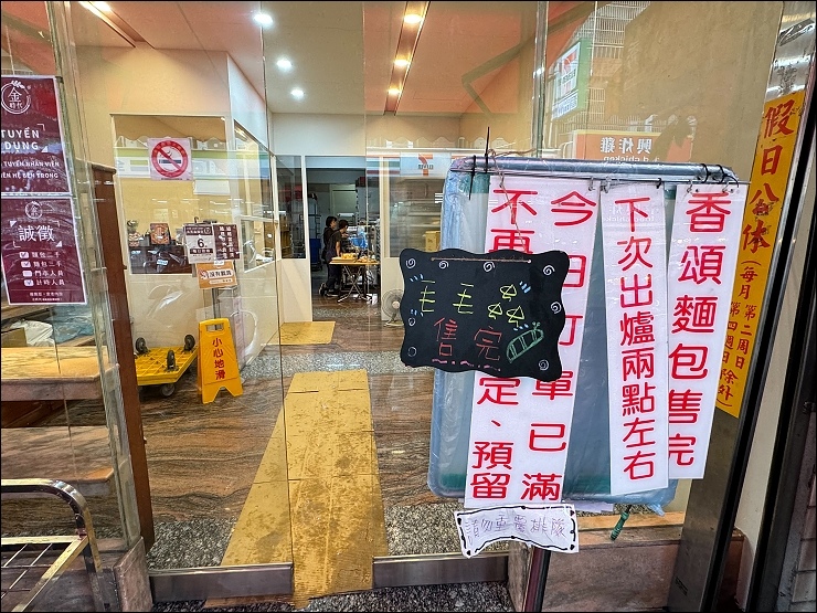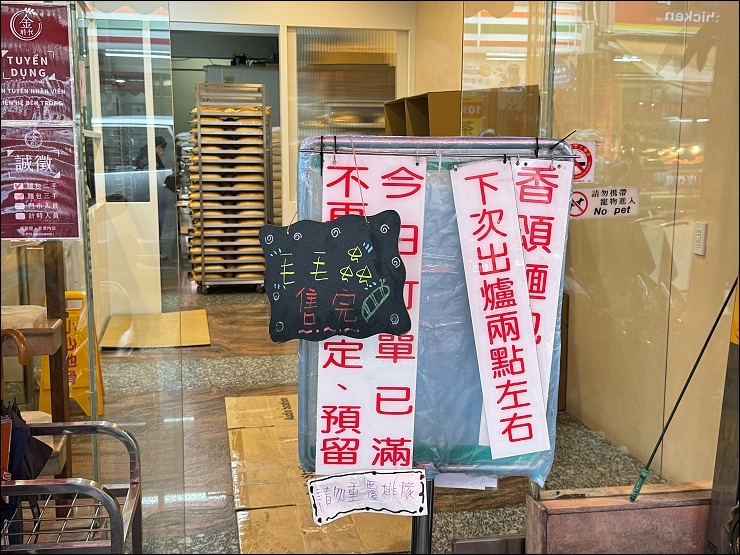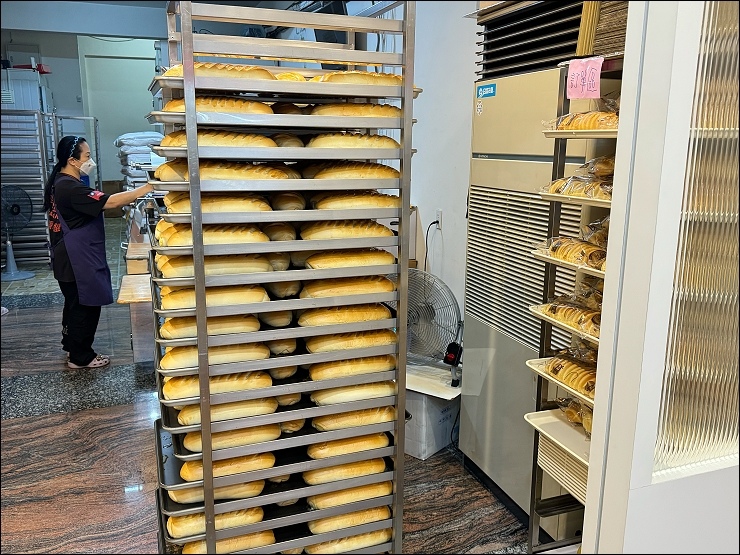 這間金時代我們最近路過龜山都會轉進去看一下,店內全部空空(烤架上看得到的法國麵包都是被訂走的),目前累積連續摃龜三次,最後一次還特別打電話問預訂和出爐時間,板娘說預訂不用想已經滿到明年,現場出爐時間是早上11點,要提早來排,然後我們11點初出來還真的全店被搬空。照片上這幾條金時代香頌麵包是最近看到板橋有團媽開團才有得吃,感覺想吃金時代最快的方式就是跟團或找代購啦。