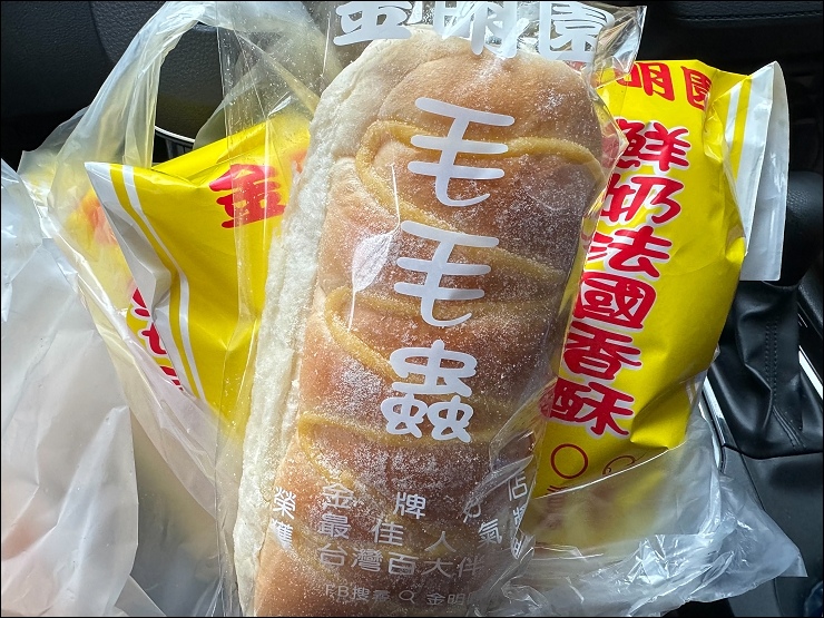 這裡要大推一下金明園的毛毛蟲麵包,內餡滿滿的克林姆,鳥大叔一個人秒殺一條,野馬妹秒嗑半條,剩下半條又被鳥大叔秒殺!