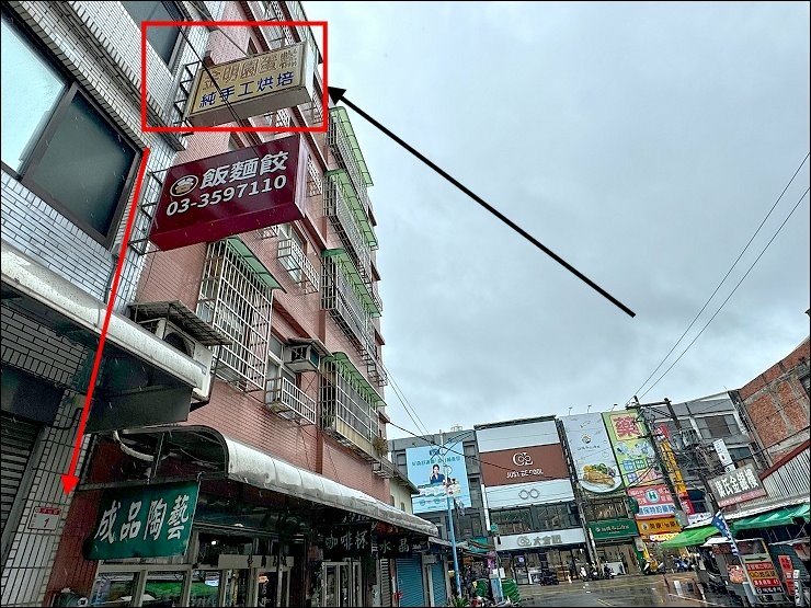 金明園烘焙的取貨地址是中山街1號的住家(從金時代烘焙走過來只要2分鐘),樓上只有個小小不顯眼的招牌,沒店面需提前預訂,到了現場打電話老板會拿出來,我們剛出爐就到手,法國麵包和毛毛蟲麵包都超好吃der!!!