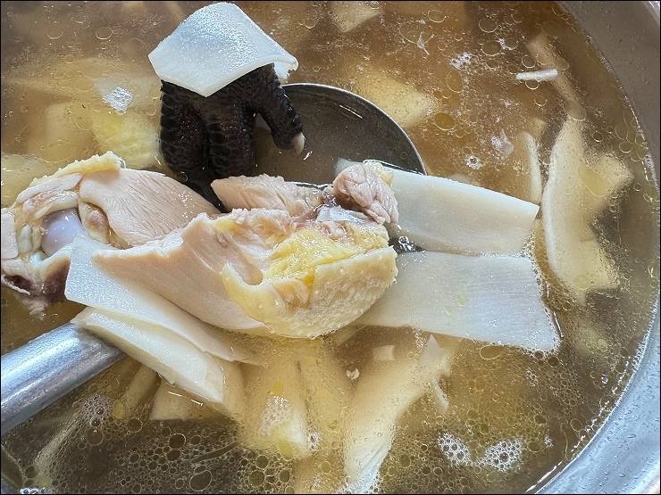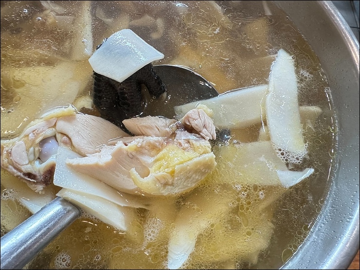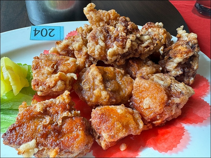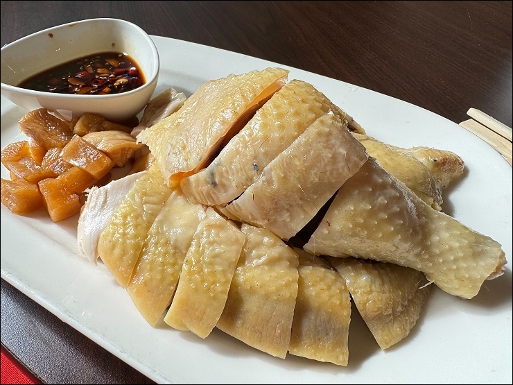 上次打卡三峽好滋味土雞城時,有團員來留言推薦五股觀音山的鴻興土雞城和碧瑤山莊,說是爬觀音山硬漢嶺必吃,其中這間鴻興土雞城(元老店)從板橋家裡過來不用半小時,走台64線下觀音山交流道就到了,下午沒休息可以避尖峰時間,店家有大停車場超級方便!這裡的特色是使用硬漢嶺山泉水和自家飼養放山雞,我們家在某年夏天為了觀音山特產綠竹筍來吃過一次,當時只記得假日人潮滿檔,這次秋末平日離峰時間再來幾乎包場,白斬雞一般表現,竹筍雞湯和招牌排骨正常表現,比較少人推的麻辣臭豆腐意外最厲害,人多的話還可以點個炸冰淇淋或拔絲地瓜收尾。