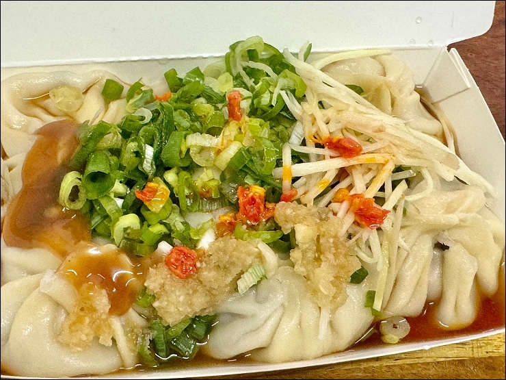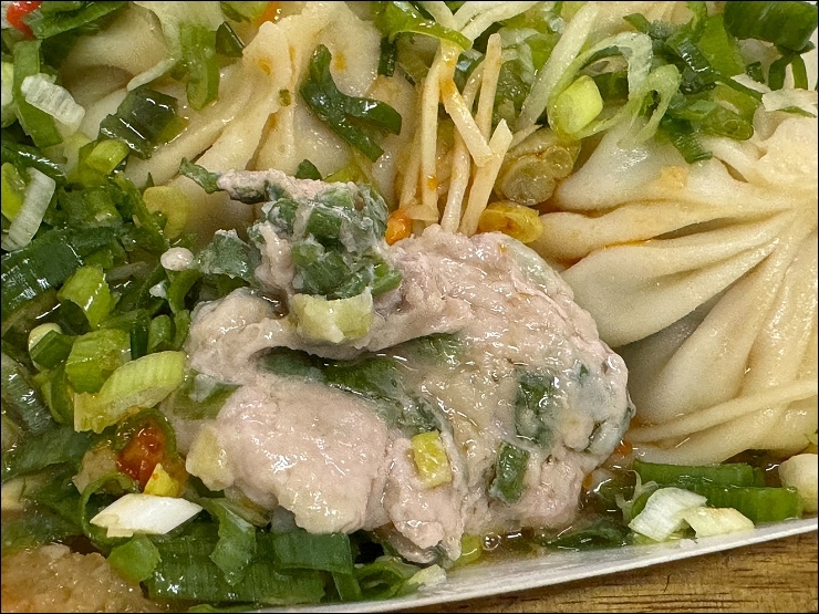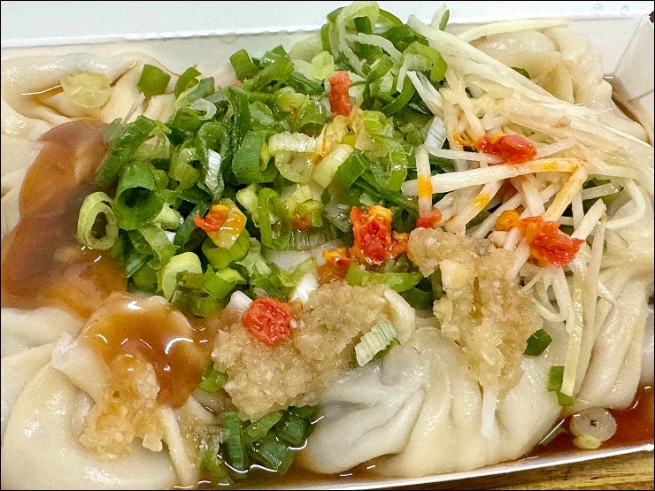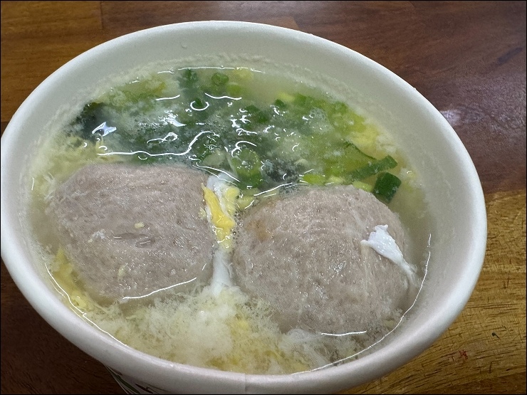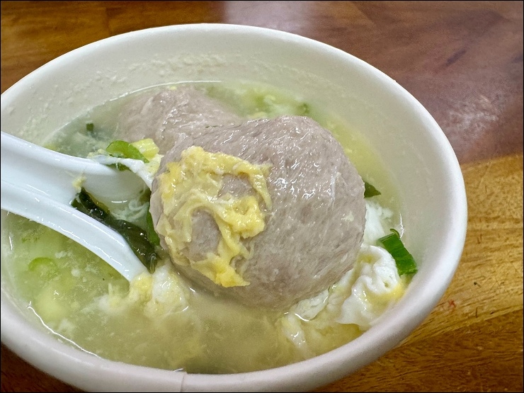 自強湯包的路邊停車位多停車方便,內用一籠6顆70元,比昨天的鮮肉湯包便宜5元,除了青蔥無限自取之外,還多了薑絲和蒜泥,湯包外皮較軟,貢丸湯加蛋比較好喝。