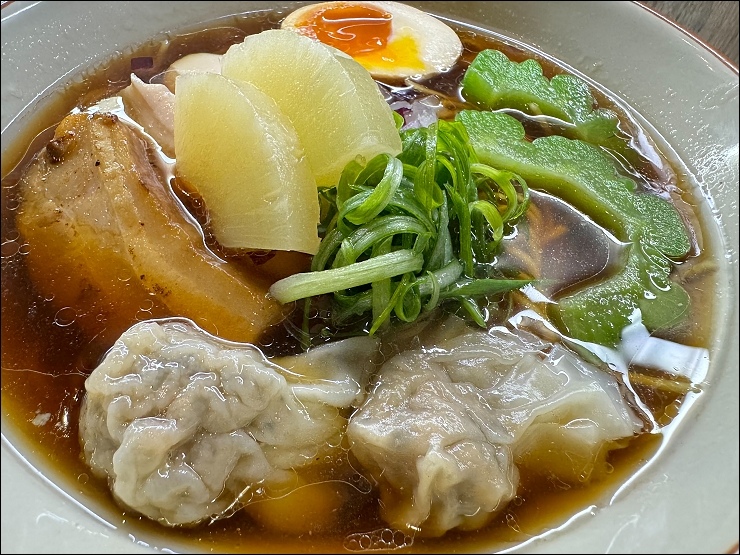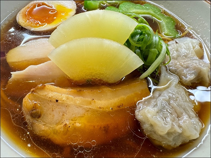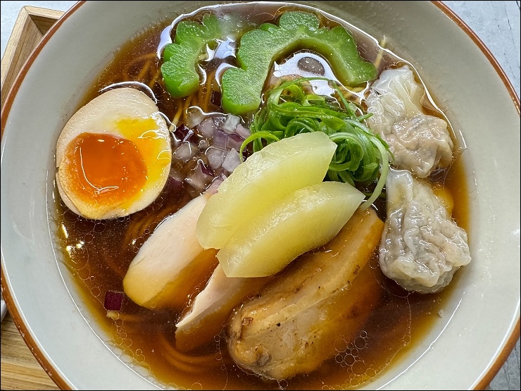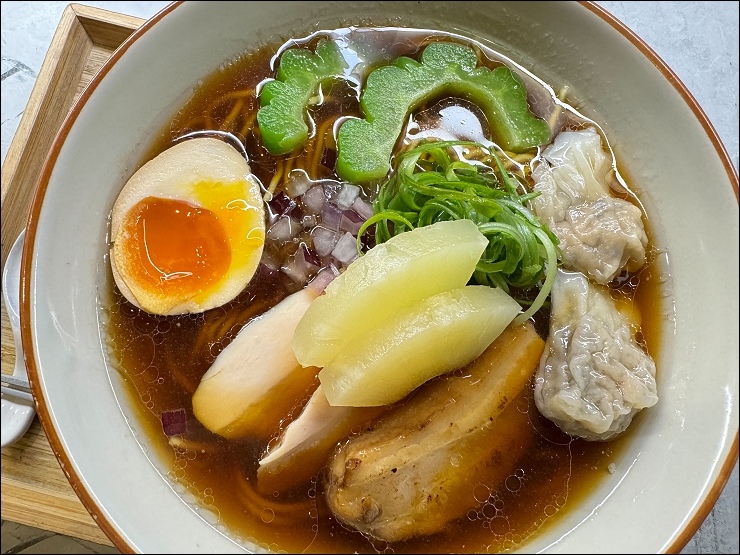 鳳醬油清湯拉麵,醃製鹹鳳梨、脆苦瓜搭醬油清湯,這個鳥大叔覺得不錯吃耶!
