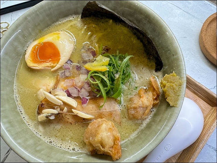 最招牌的檸雞白湯拉麵,初訪時完售沒吃到,檸檬結合雞白湯口味沒有違合感,順利完食。